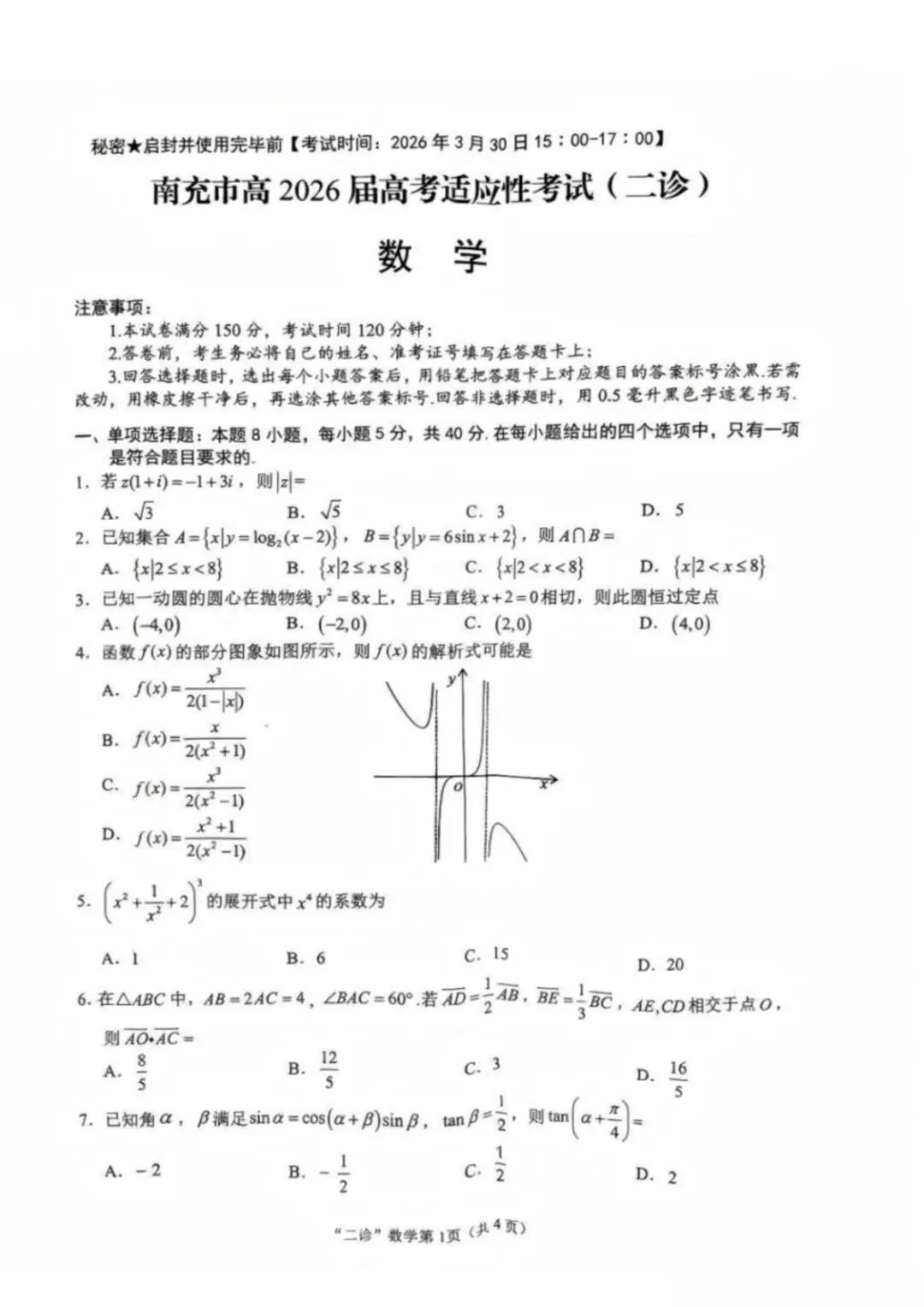 【高三】四川省南充市高2026届高考适应性考试(二诊)