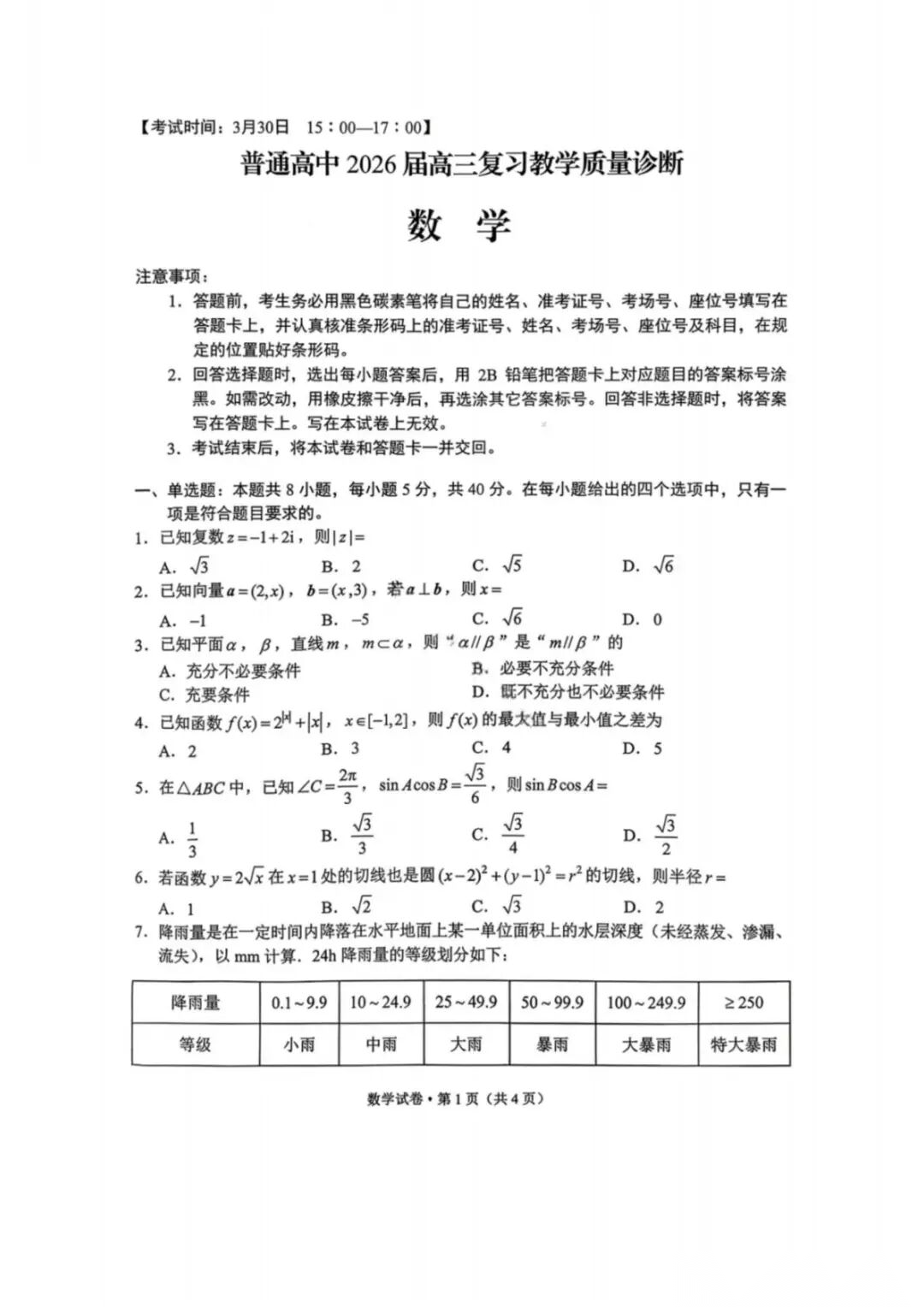 【高三】四川省南充市高2026届高考适应性考试(二诊) 【高三】四川省南充市高2026届高考适应性考试(二诊)