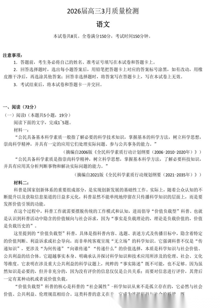 【全科】重庆市第一中学2026届3月高考适应性月考卷(六) 【全科】重庆市第一中学2026届3月高考适应性月考卷(六)