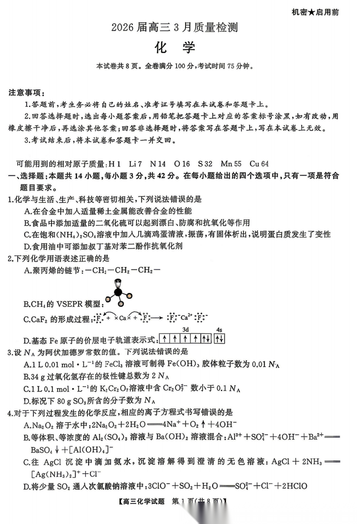 【高三】四川省南充市高2026届高考适应性考试(二诊) 【高三】四川省南充市高2026届高考适应性考试(二诊)