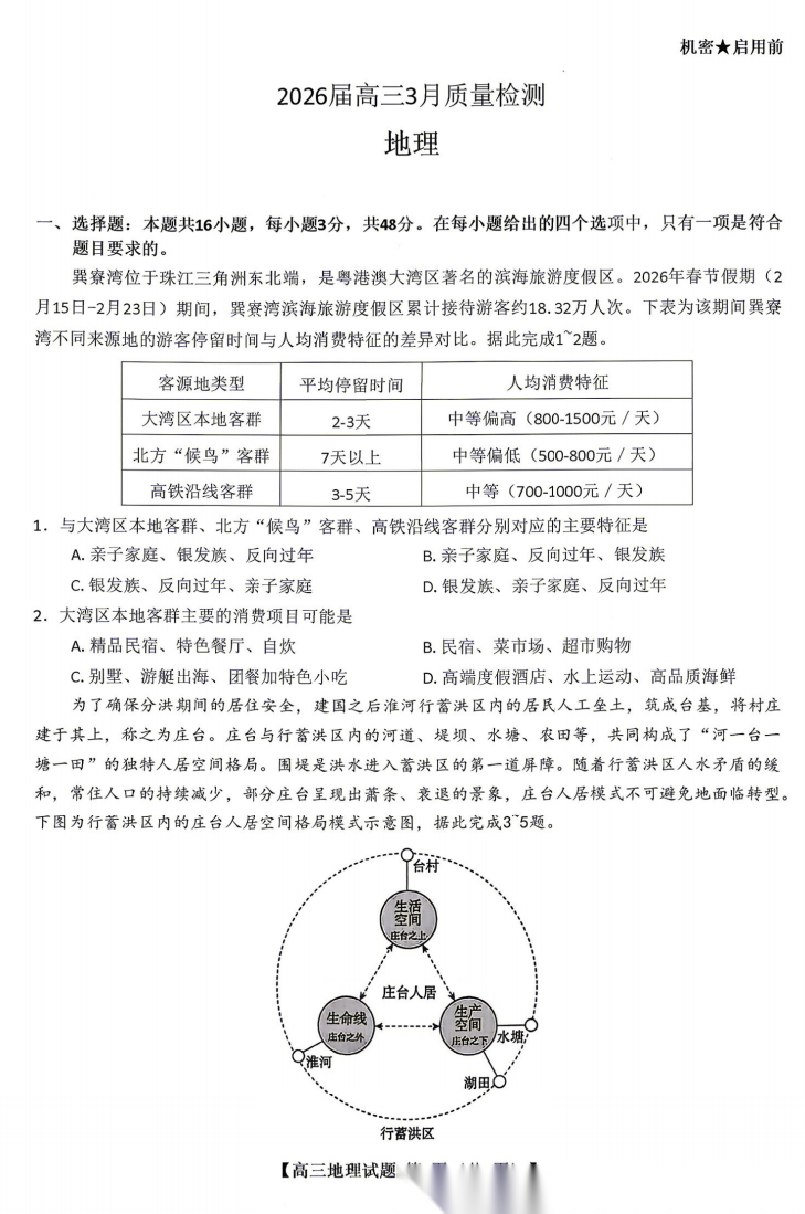【高三】重庆市南开中学高2026届高三年级3月质量检测 【高三】重庆市南开中学高2026届高三年级3月质量检测