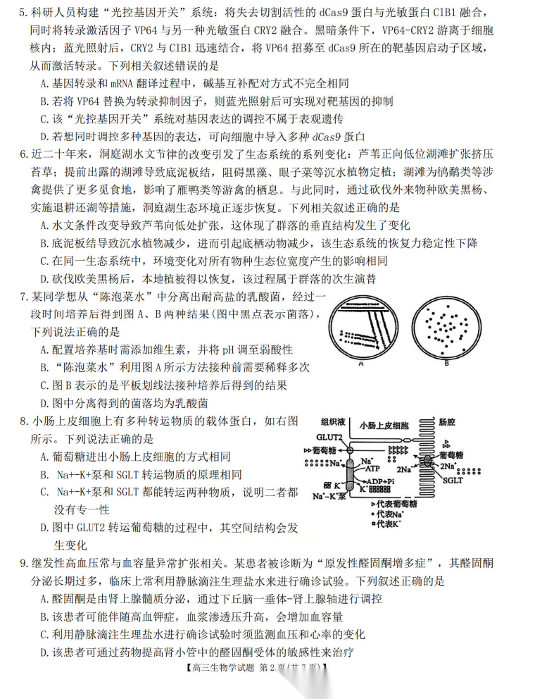 【湖南卷】湖南天壹名校联盟2026届高三年级3月质量检测(3.30-3.31) 化学生物语文地理试题卷+答案