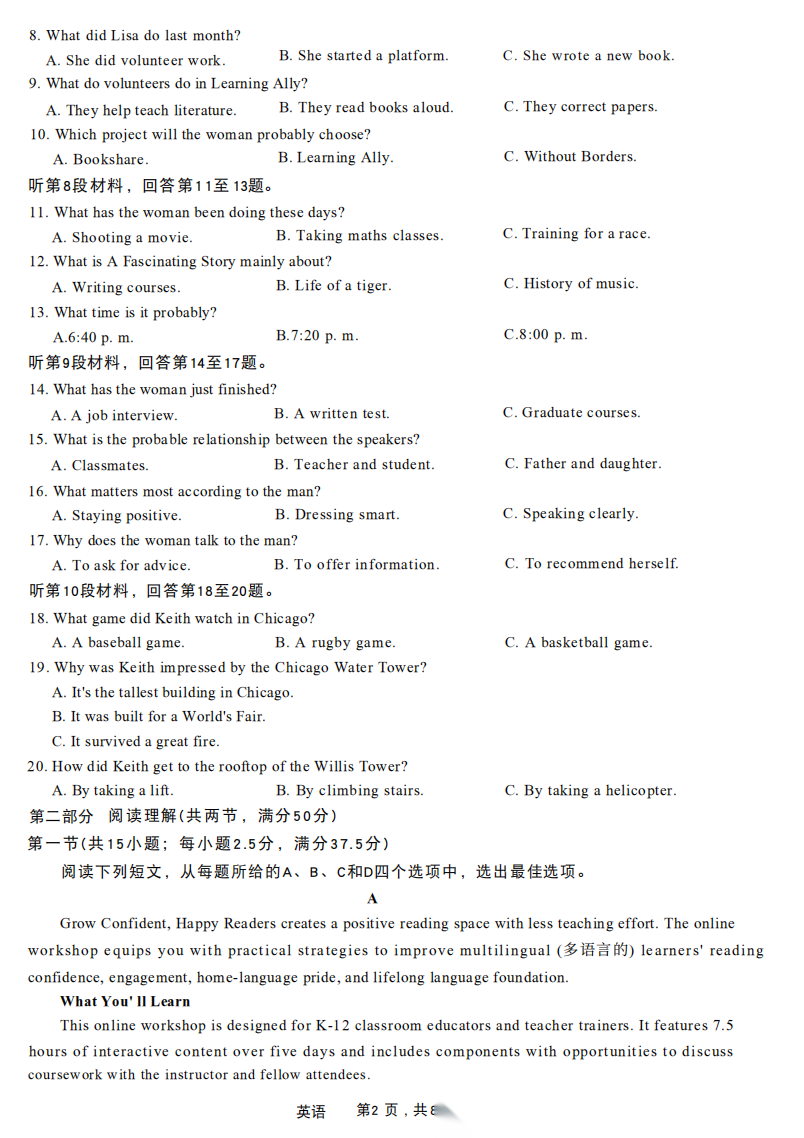【高三】四川省南充市高2026届高考适应性考试(二诊) 【高三】四川省南充市高2026届高考适应性考试(二诊)