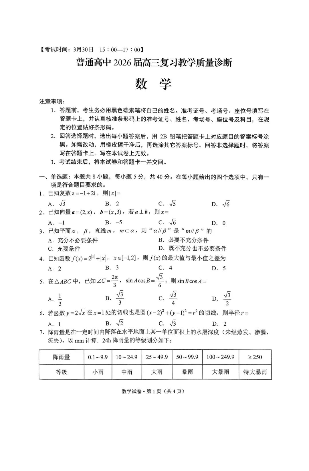 【四川卷】四川省南充市高2026届高三高考适应性考试(二诊)(南充二诊)(3.30-4.1) 数学语文试题卷+答案 【四川卷】四川省南充市高2026届高三高考适应性考试(二诊)(南充二诊)(3.30-4.1) 数学语文试题卷+答...