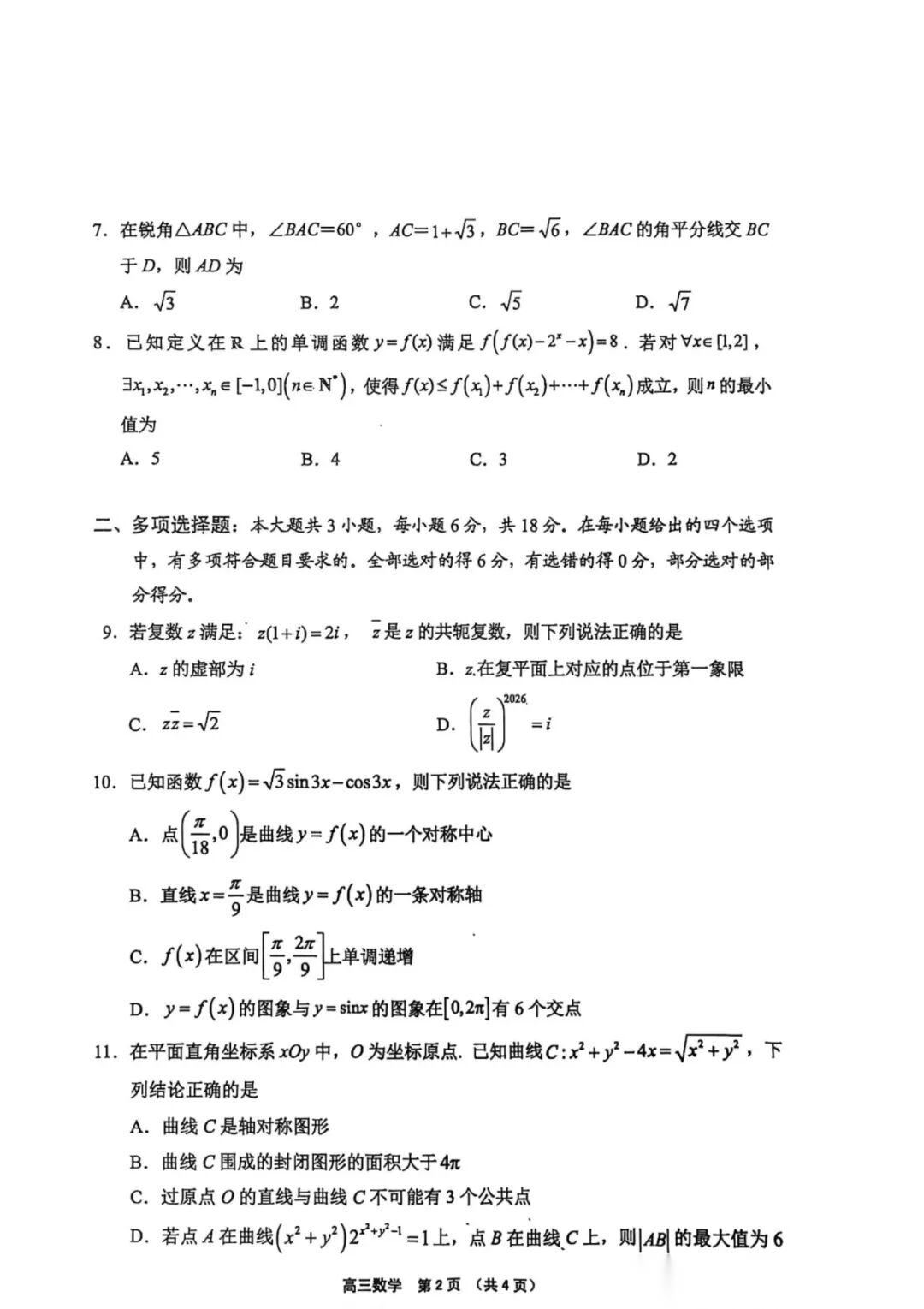 【四川卷】四川省广安市高2023级(2026届)高三年级第二次模拟考试(广安二诊)(3.30-4.1) 数学语文试题卷+答案 【四川卷】四川省广安市高2023级(2026届)高三年级第二次模拟考试(广安二诊)(3.30-4.1) 数学语文试题...
