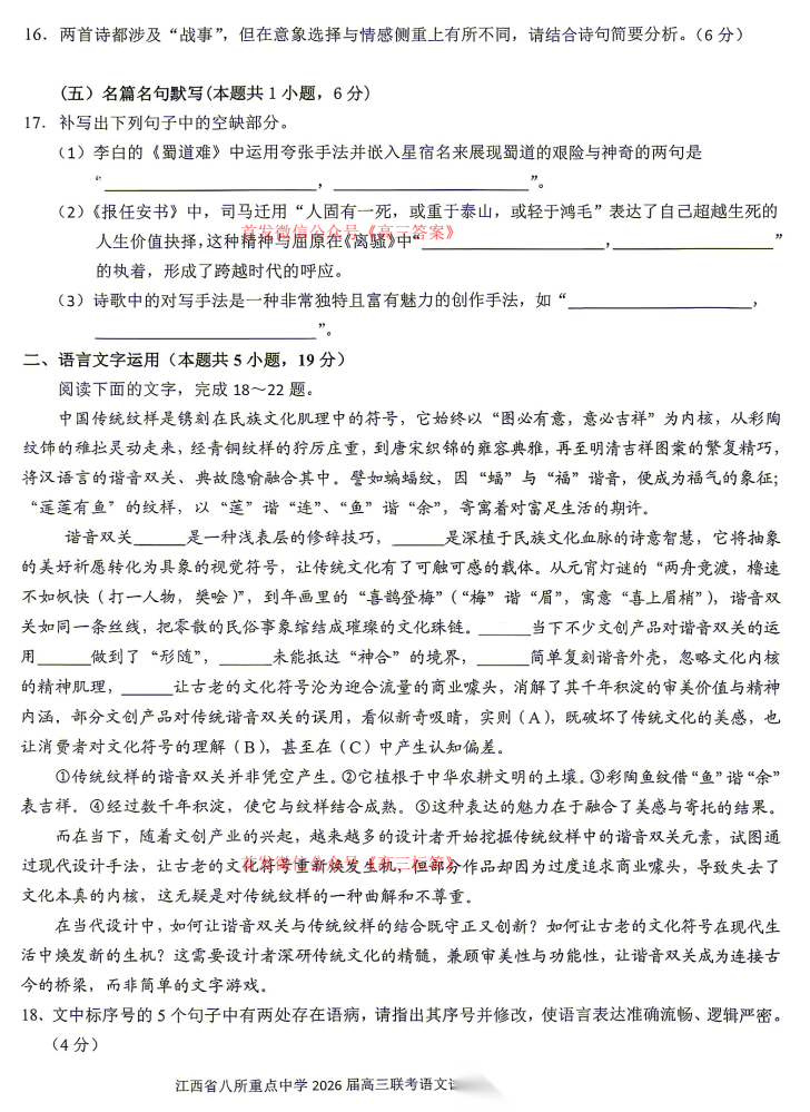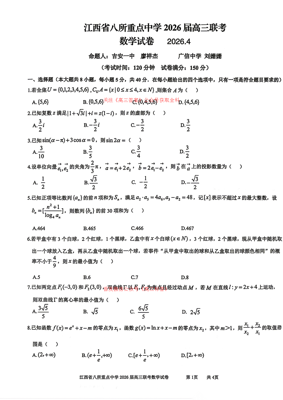 九师联盟 2026 届高三3月30联考 九师联盟 2026 届高三3月30联考