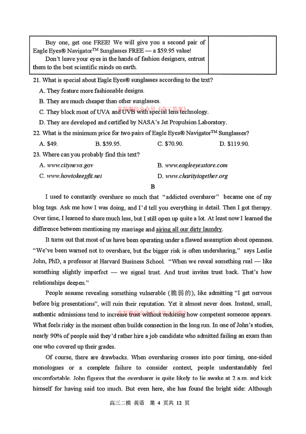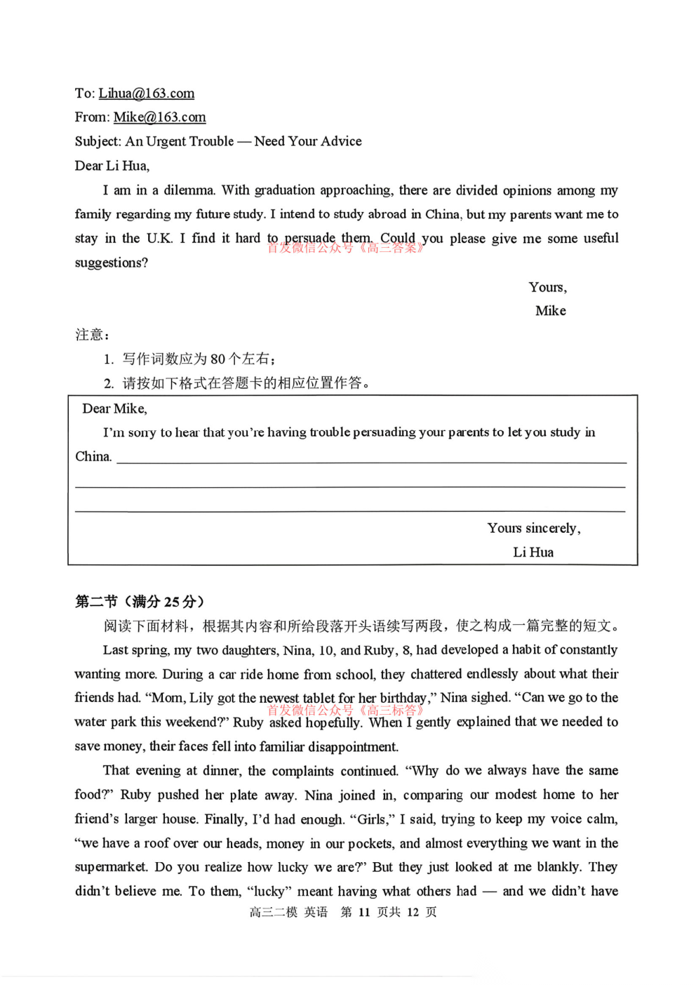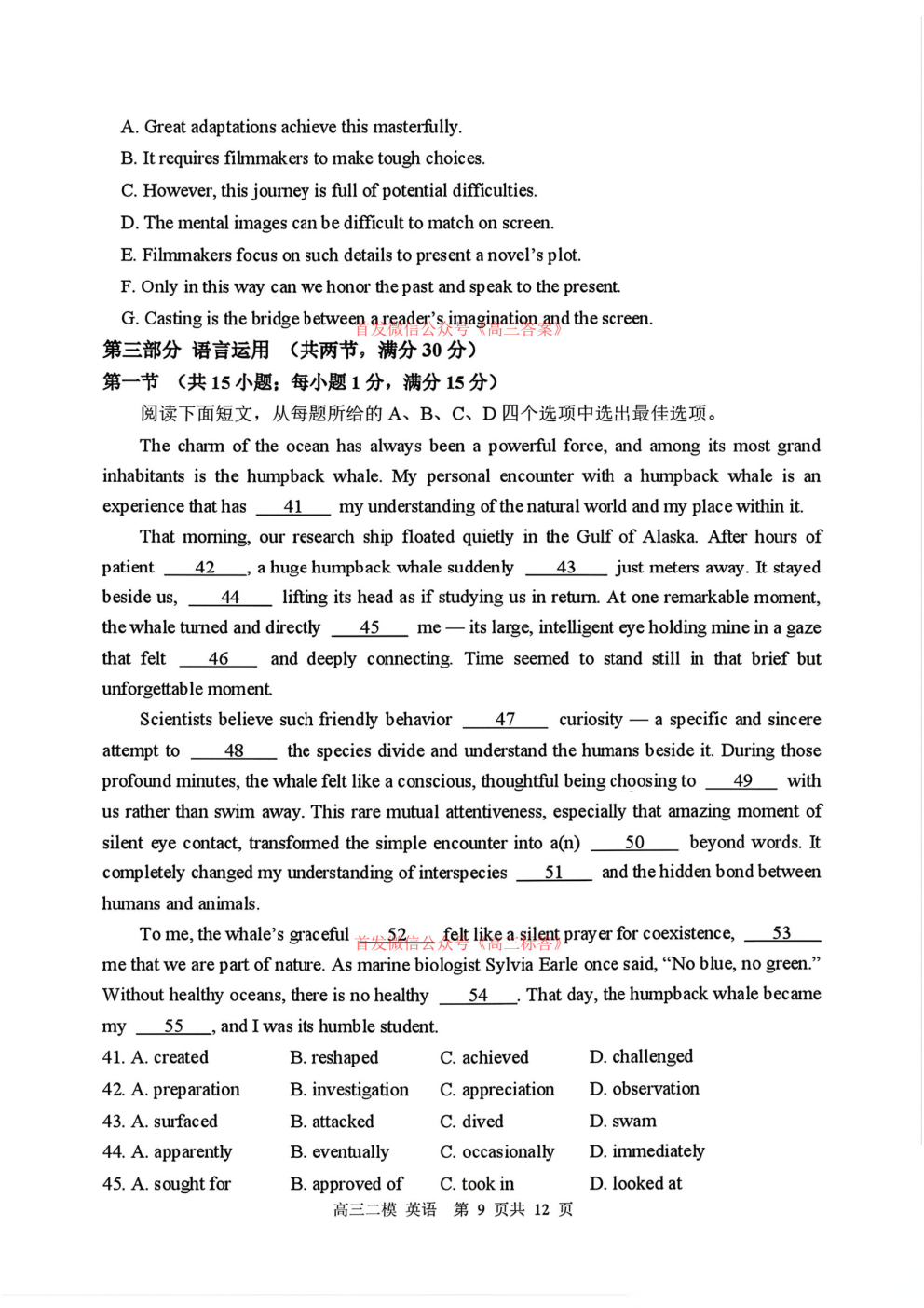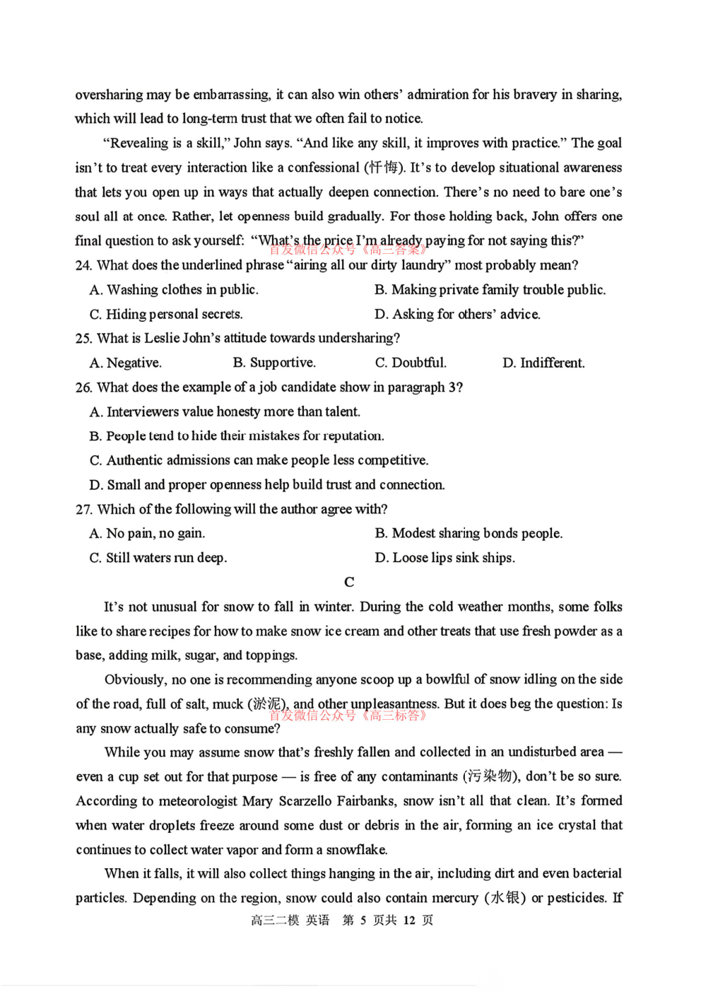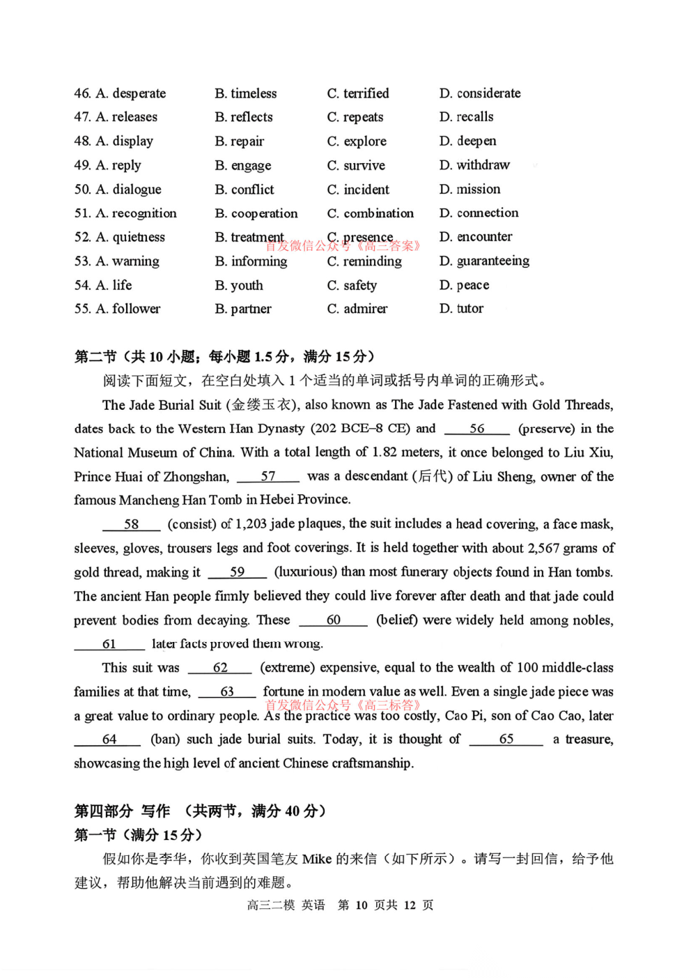 2026青桐鸣高三4月内部练答案 2026青桐鸣高三4月内部练答案