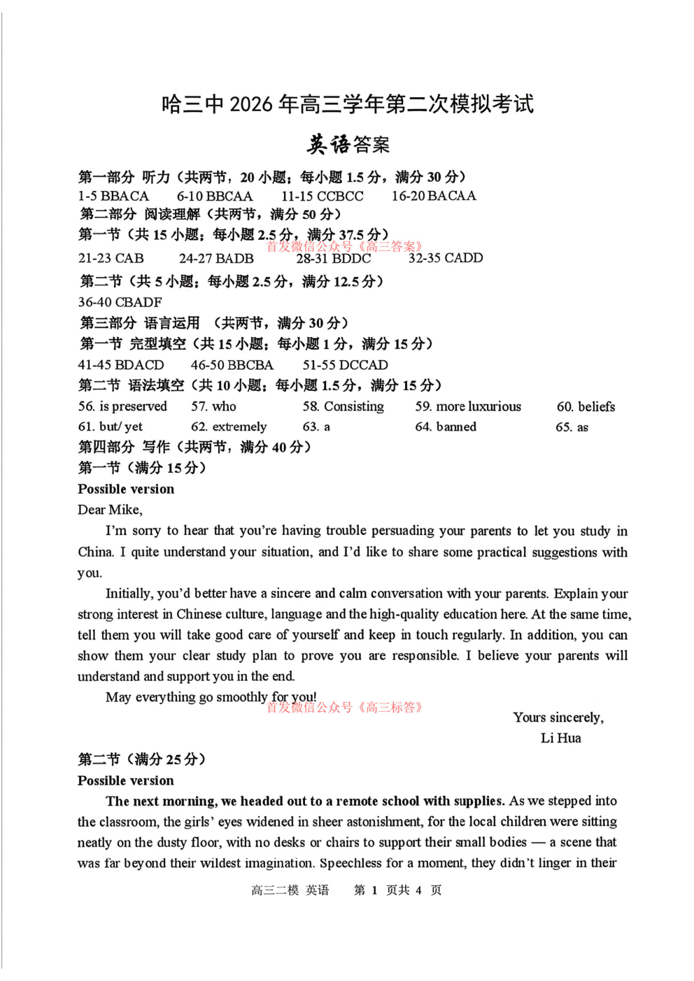【哈三中二模】2026年高三第二次模拟考试全科下载