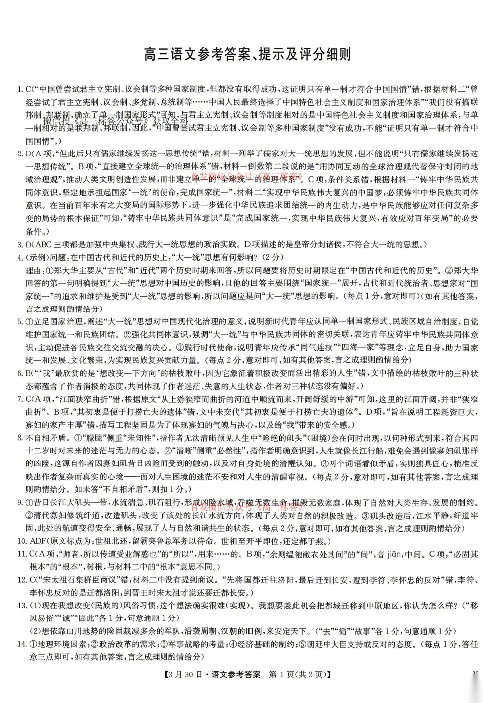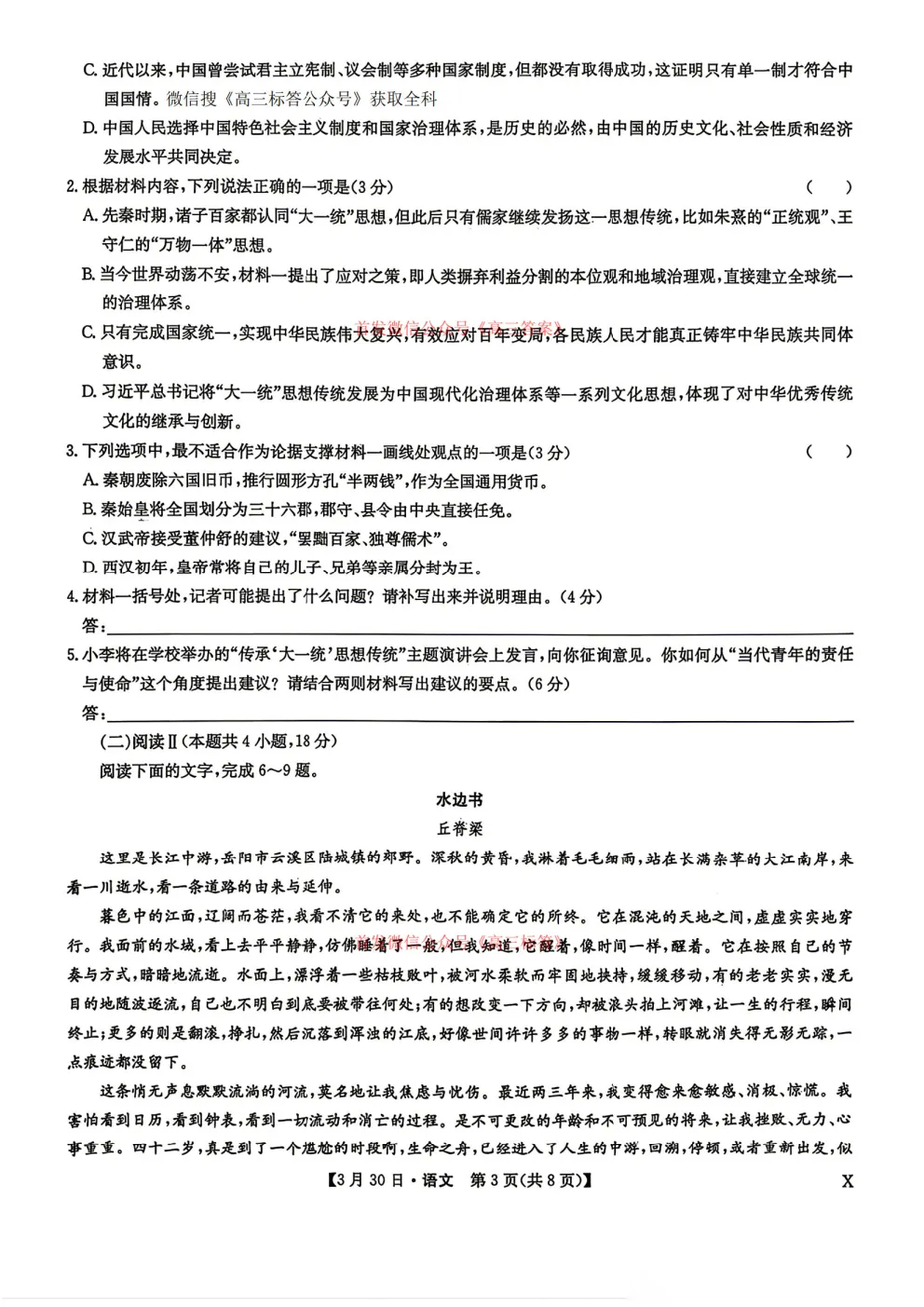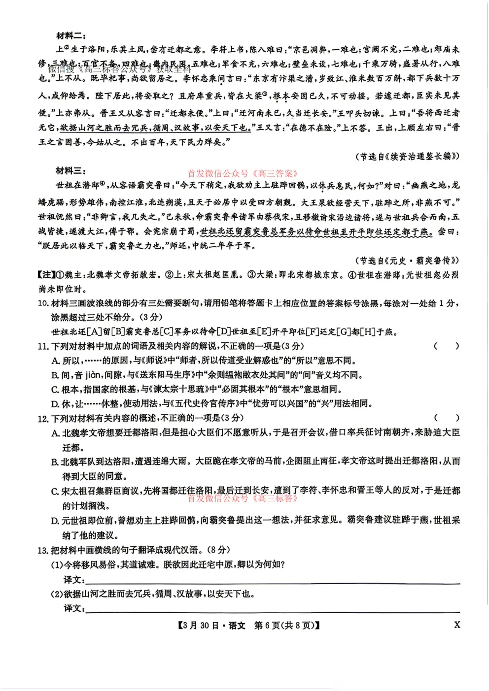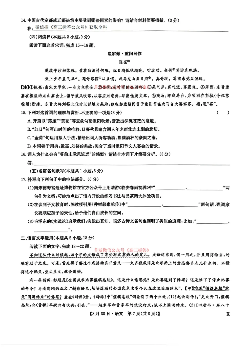 2026九师联盟高三3月30、31联考全科下载