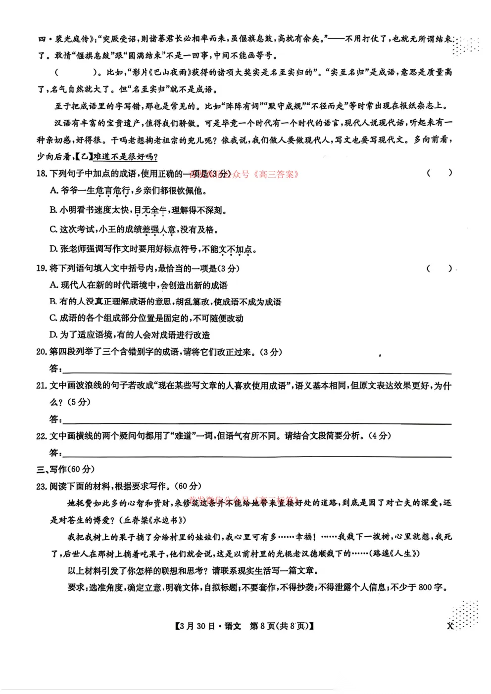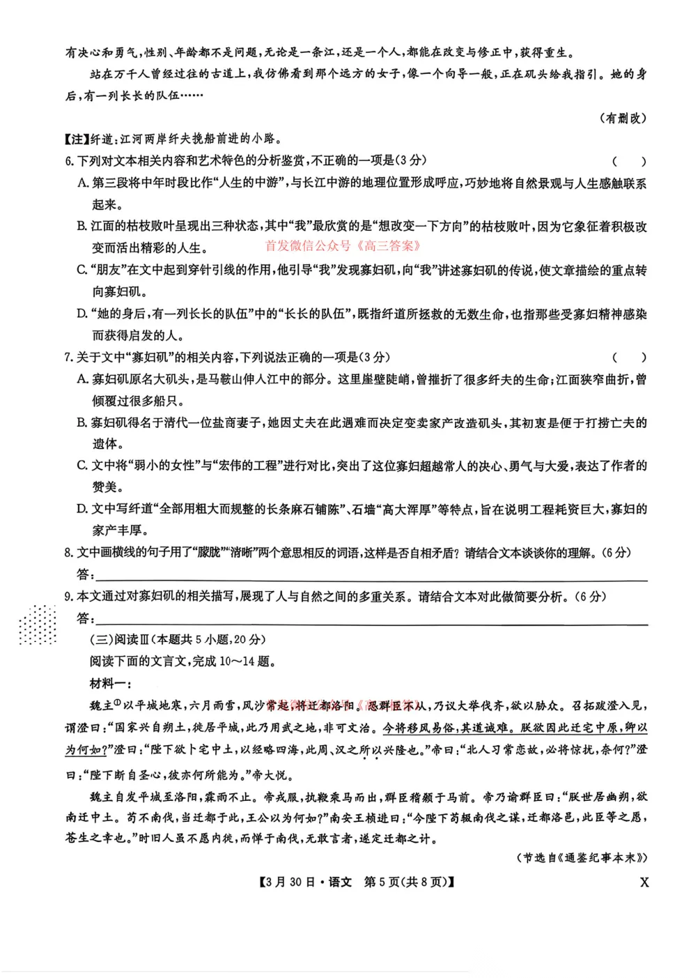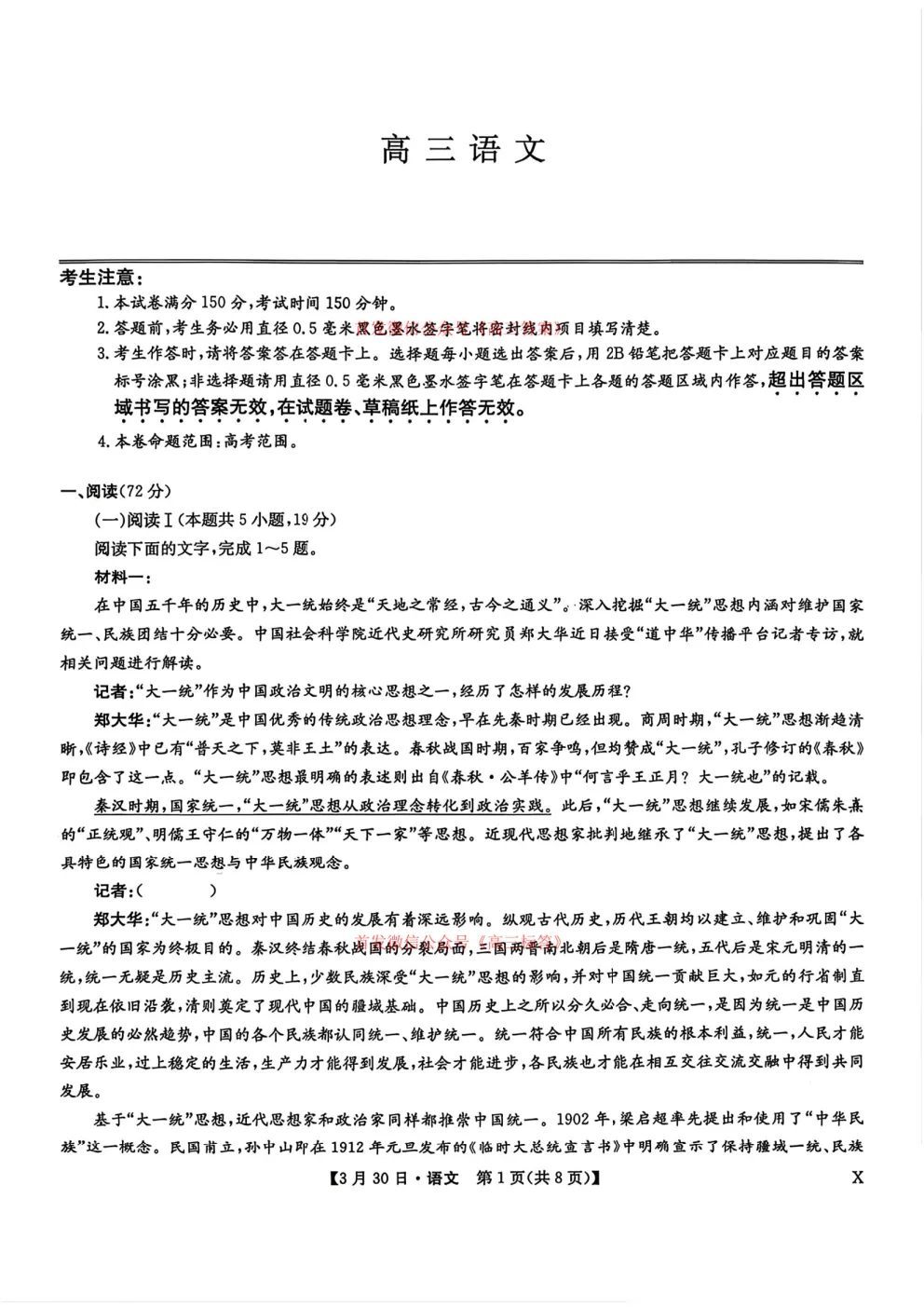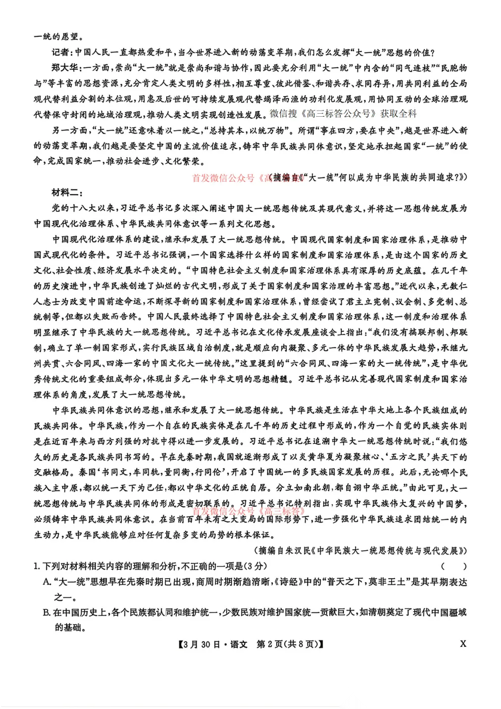 2026九师联盟高三3月30、31联考全科下载