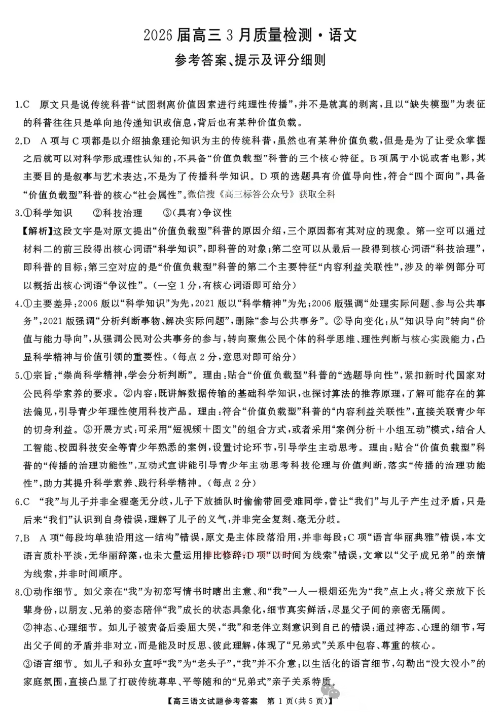 【三省三校二模】2026年高三年级3月模拟考试答案 【三省三校二模】2026年高三年级3月模拟考试答案