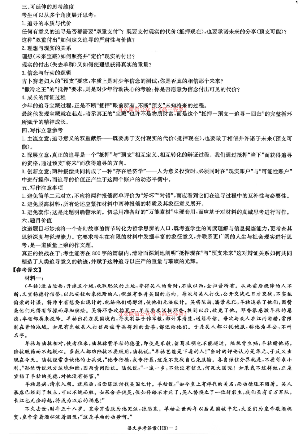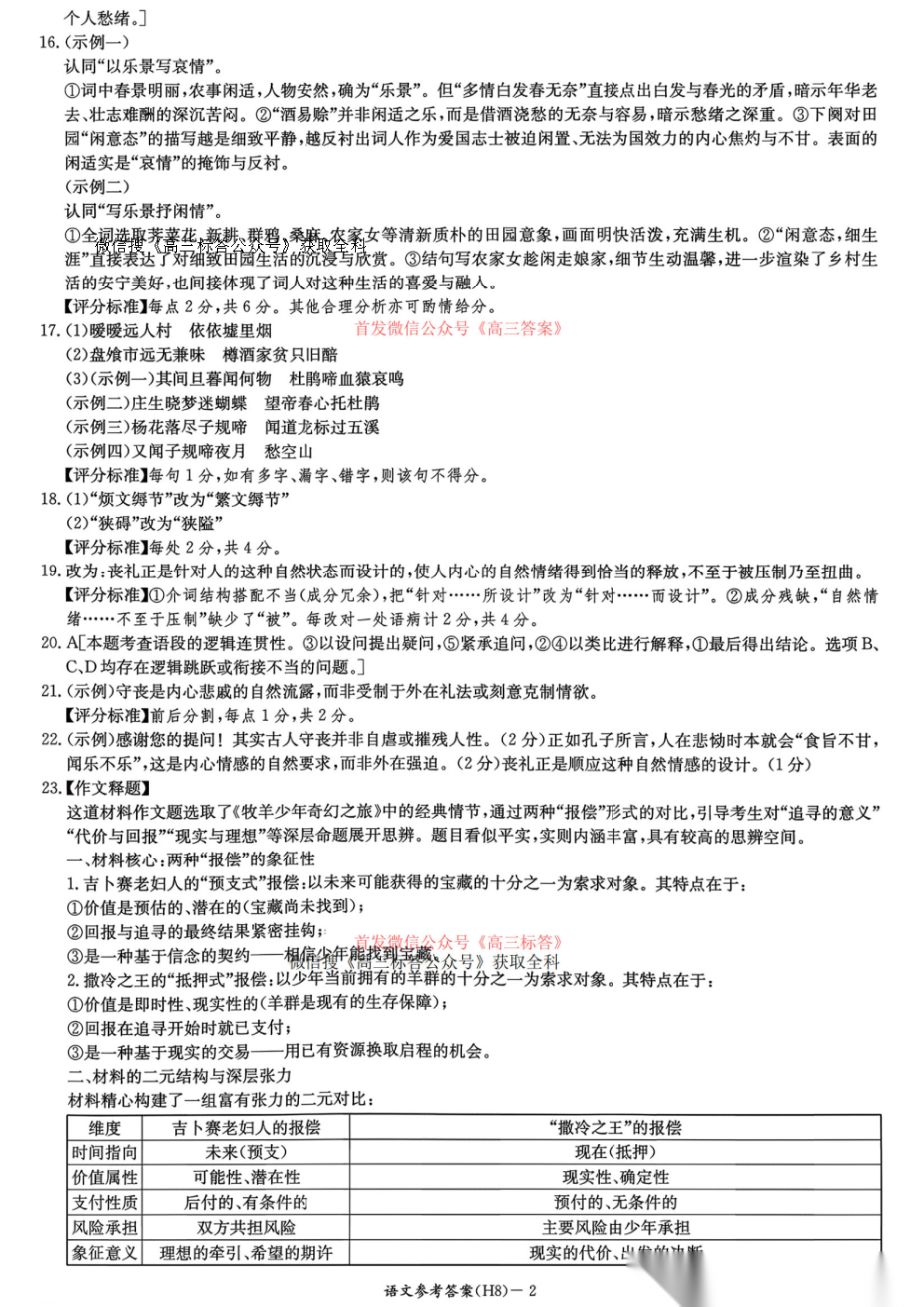 江西省八所重点中学2026届高三4月联考答案 江西省八所重点中学2026届高三4月联考答案