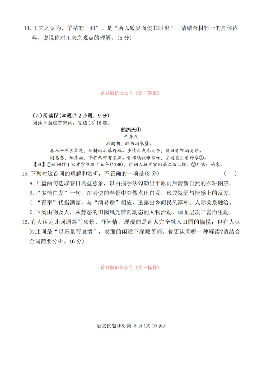 2026九师联盟高三3月30、31联考全科下载 2026九师联盟高三3月30、31联考全科下载