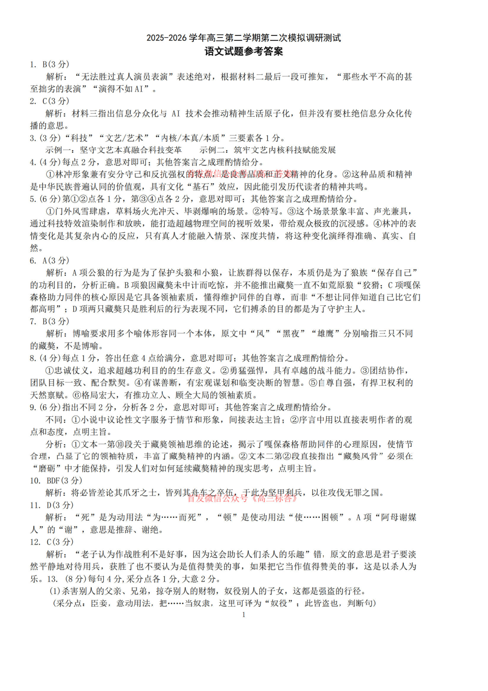 【三省三校二模】2026年高三年级3月模拟考试答案 【三省三校二模】2026年高三年级3月模拟考试答案