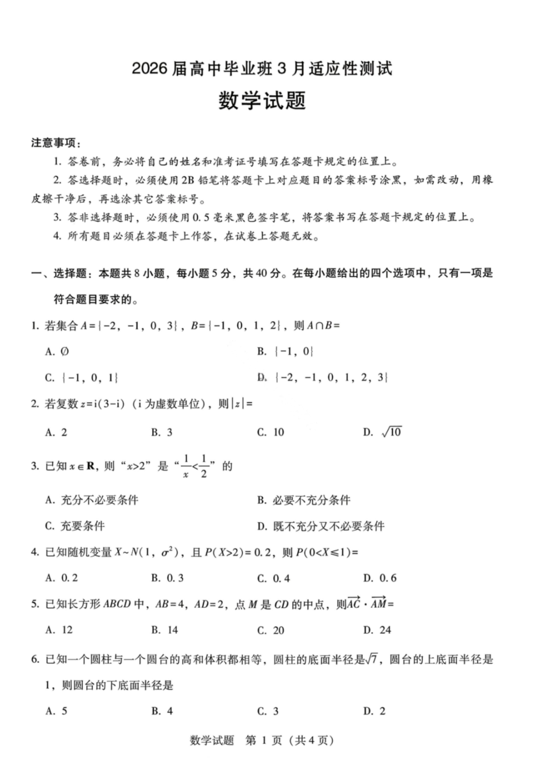 广西八市2026届高中毕业班3月适应性测试(广西八市二模)