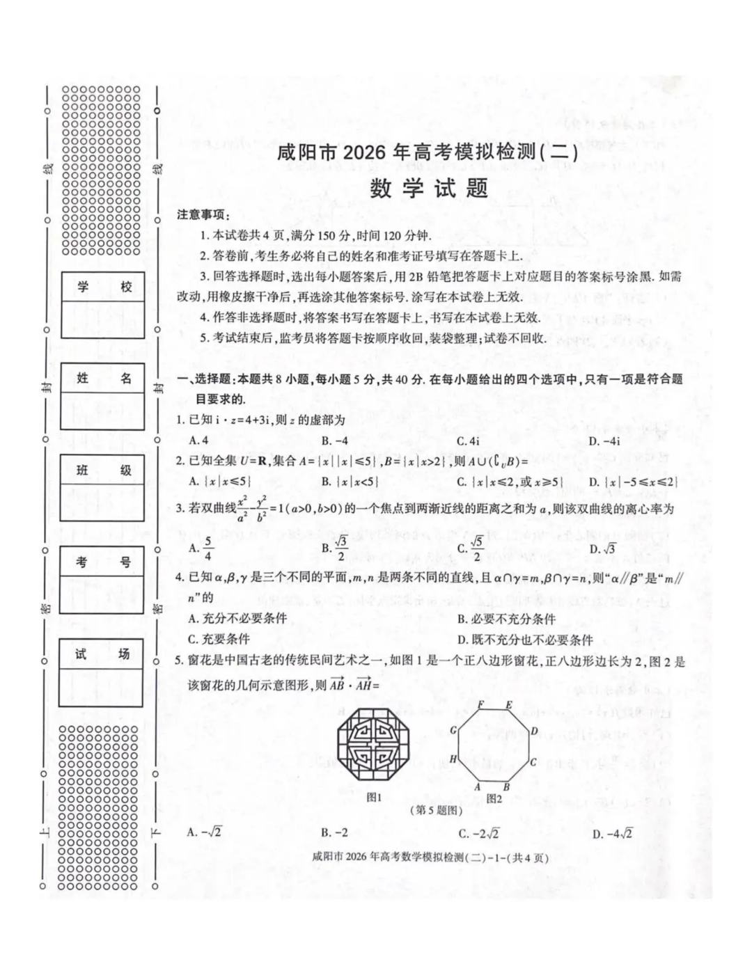 陕西省咸阳市2026届高考模拟检测(二)(咸阳二模)
