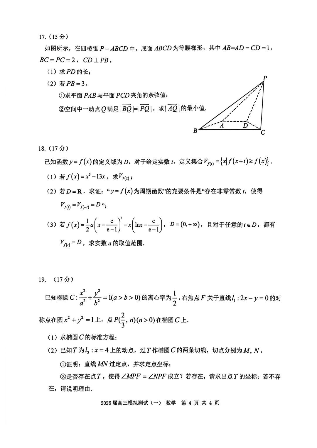 重庆一中高2026届高三下学期3月(末)月考 重庆一中高2026届高三下学期3月(末)月考