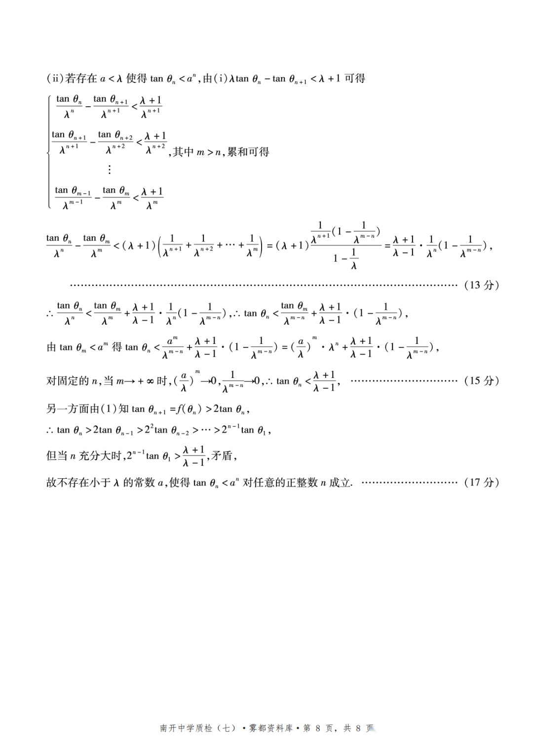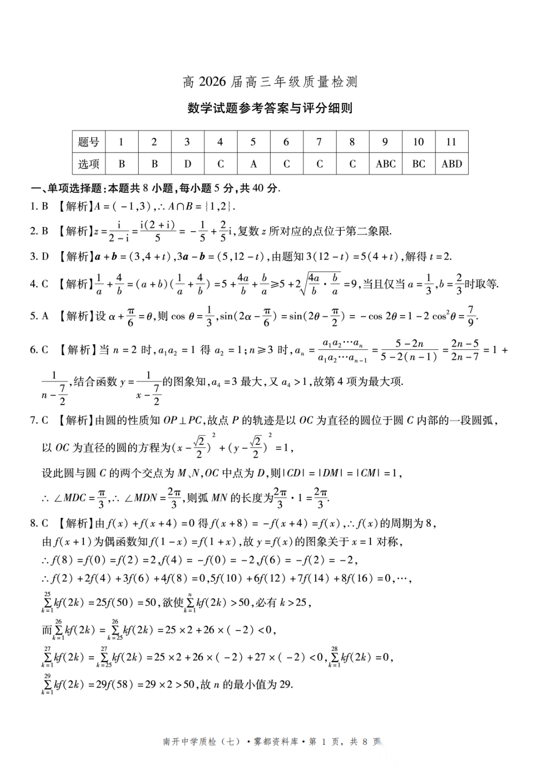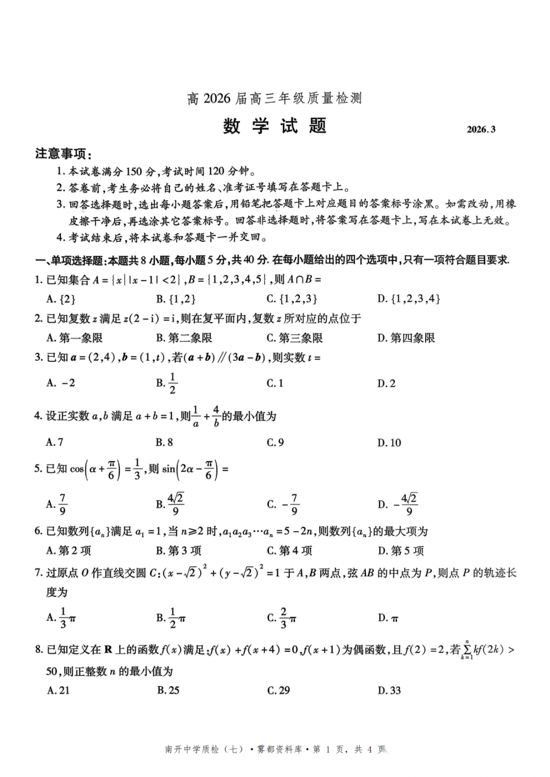 【南开中学联考七全科】重庆市南开中学高2026届高三年级质量检测(七)