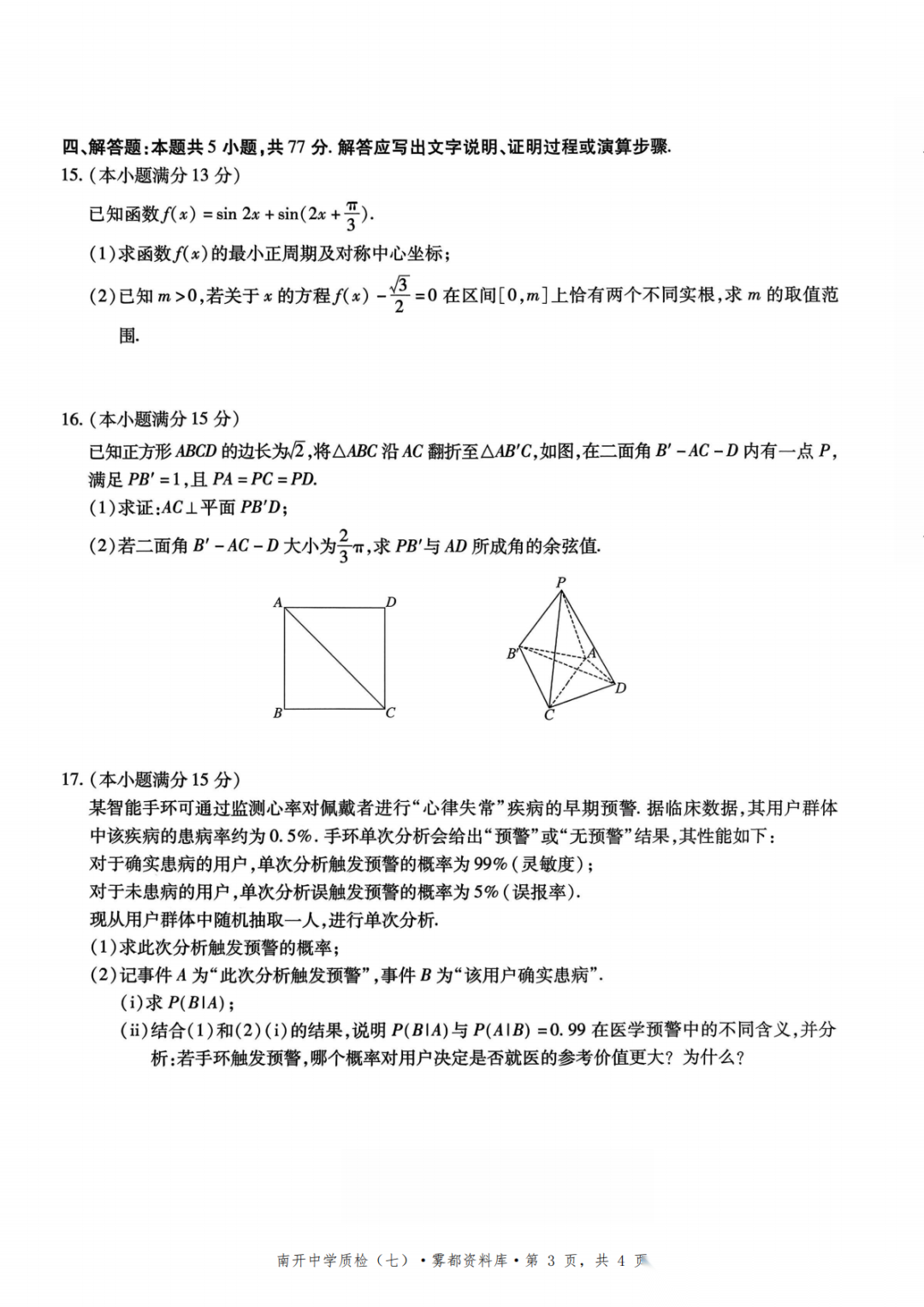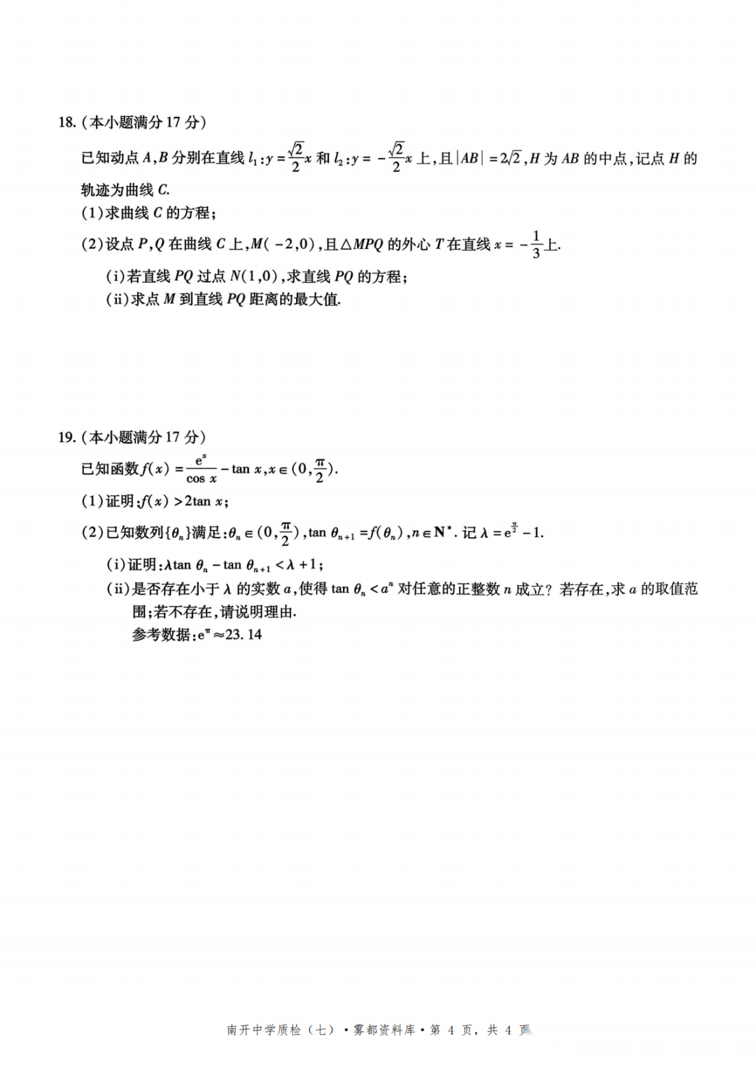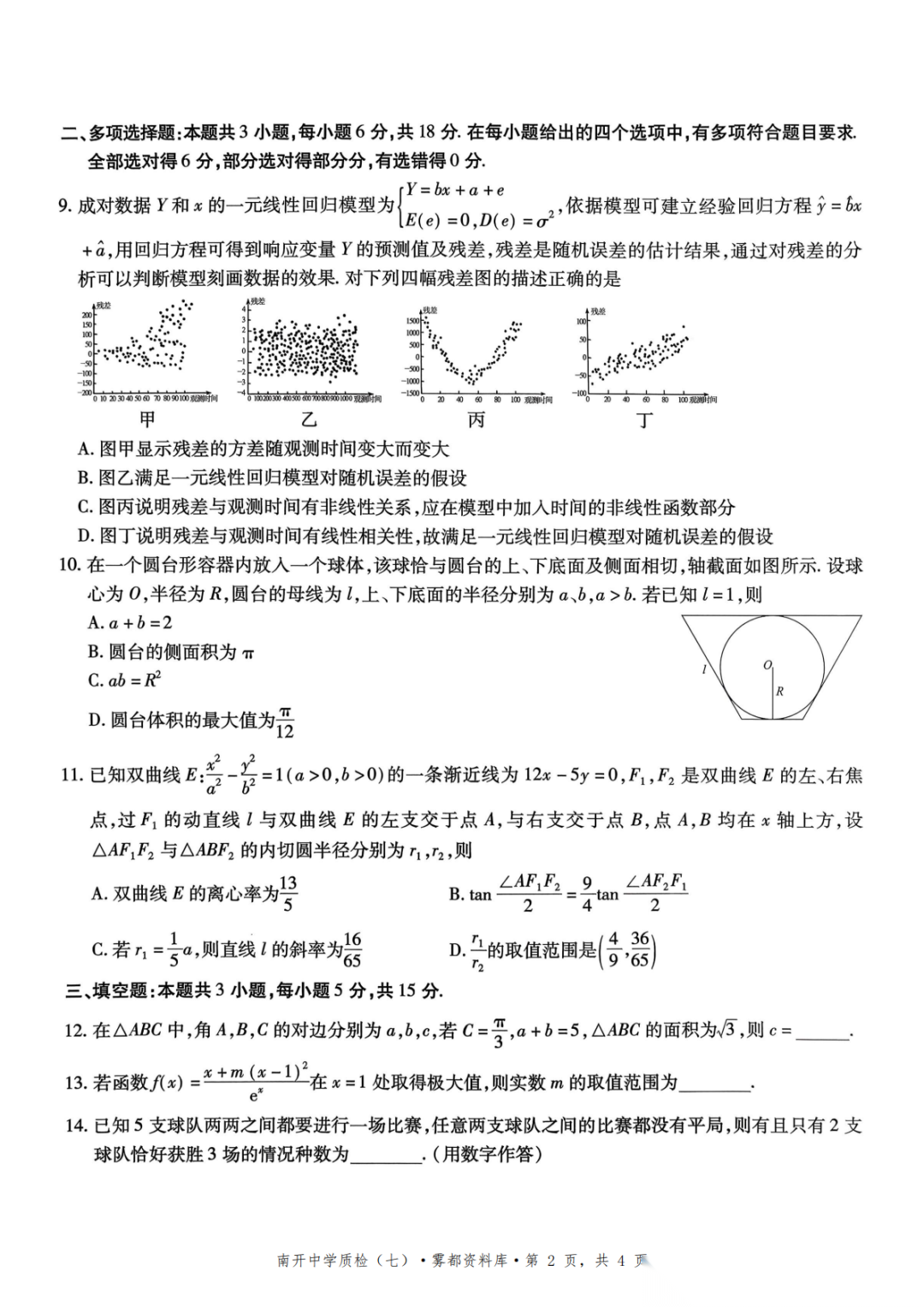 【南开中学联考七全科】重庆市南开中学高2026届高三年级质量检测(七)