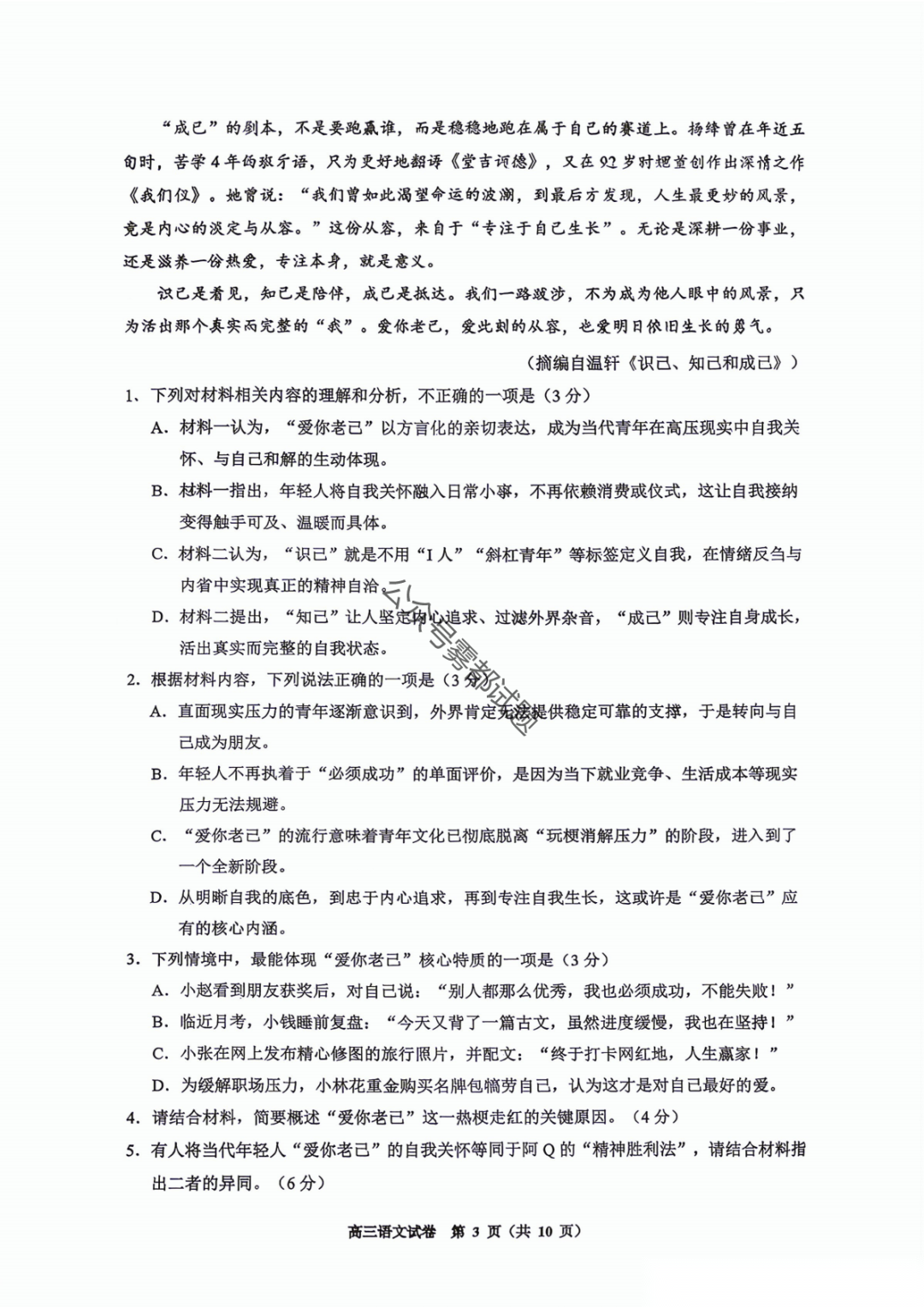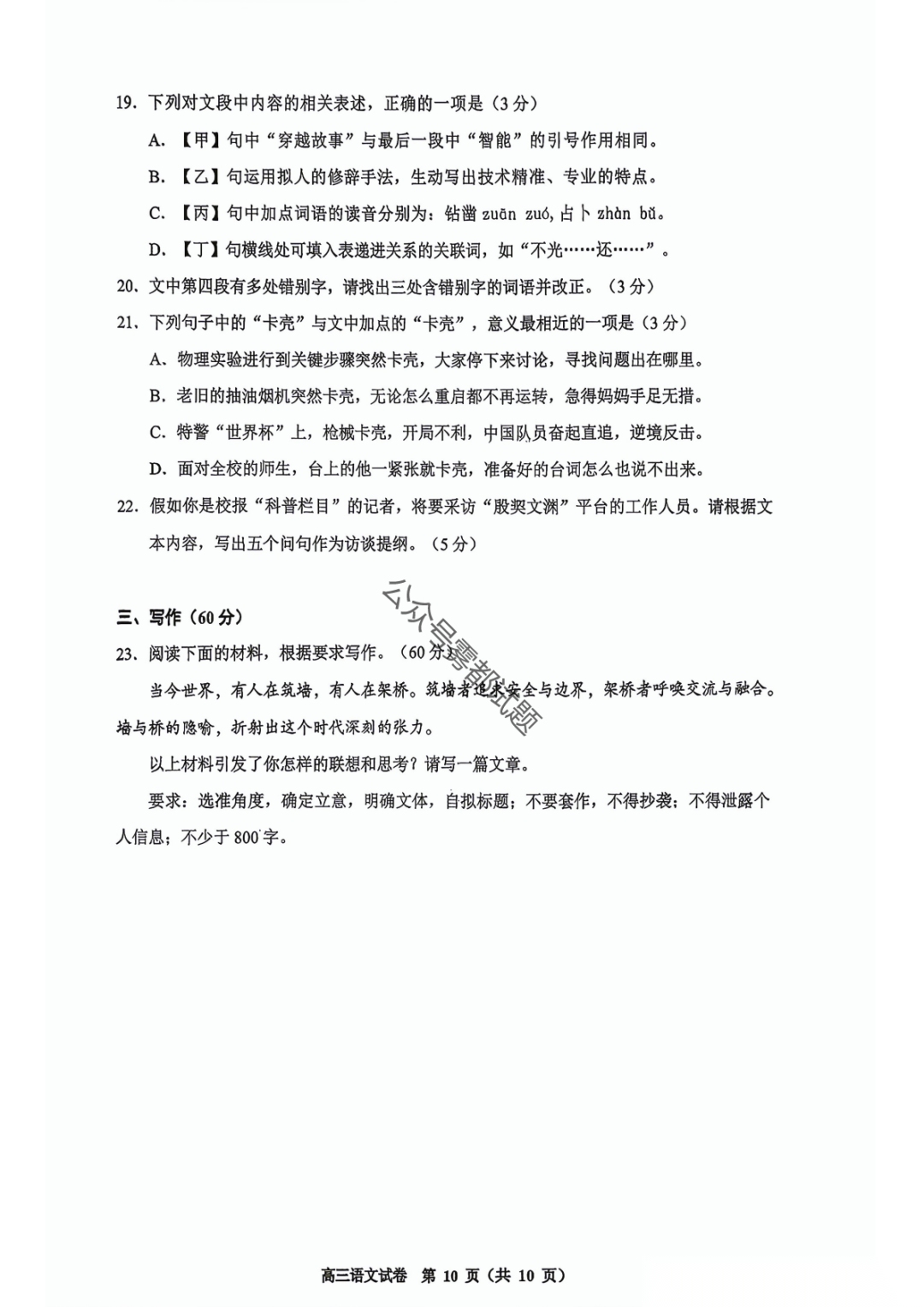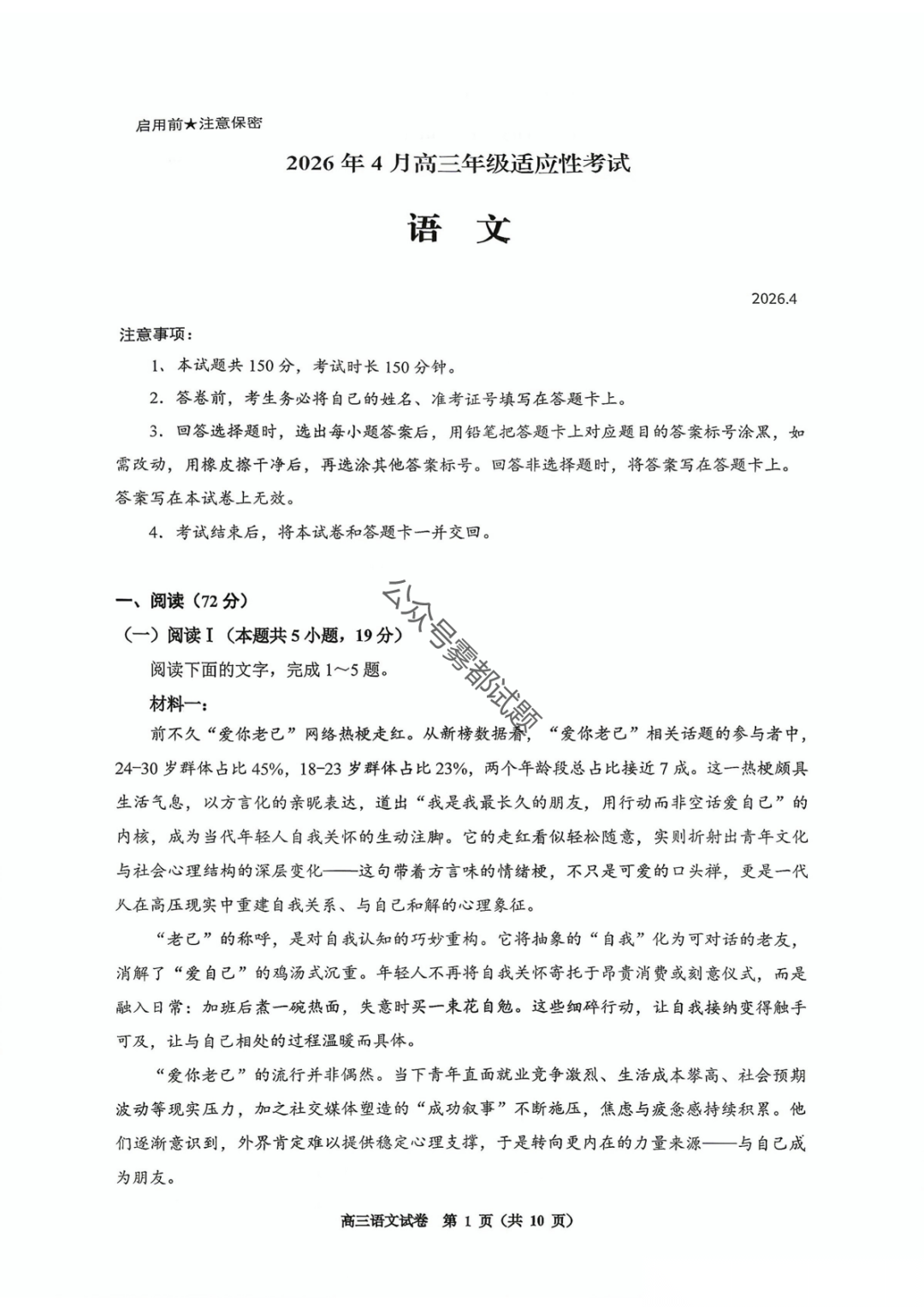 重庆市育才中学高2026届高三(下)3月月考 重庆市育才中学高2026届高三(下)3月月考
