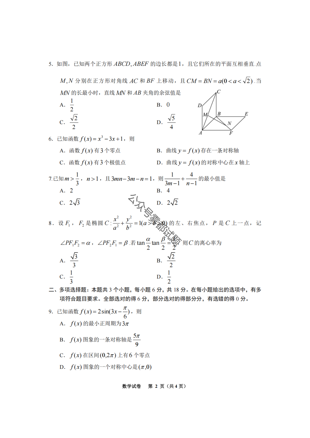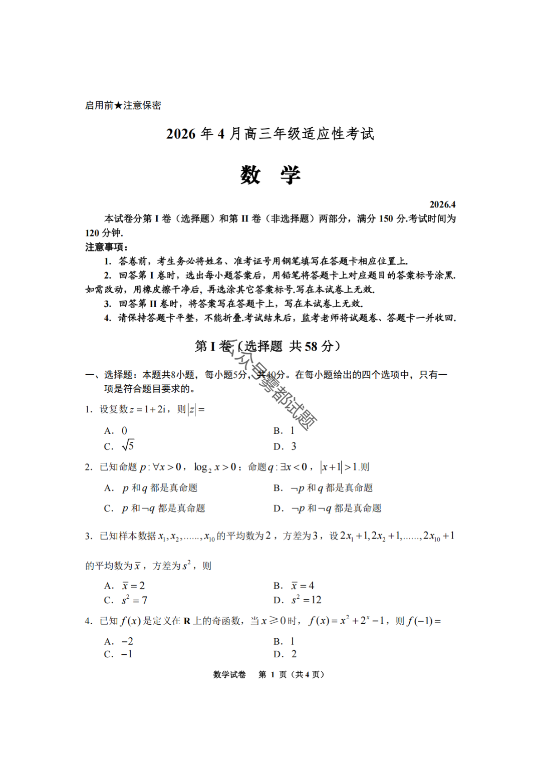 广东省中山市2026届高三下学期模拟测试(一)(中山一模) 广东省中山市2026届高三下学期模拟测试(一)(中山一模)