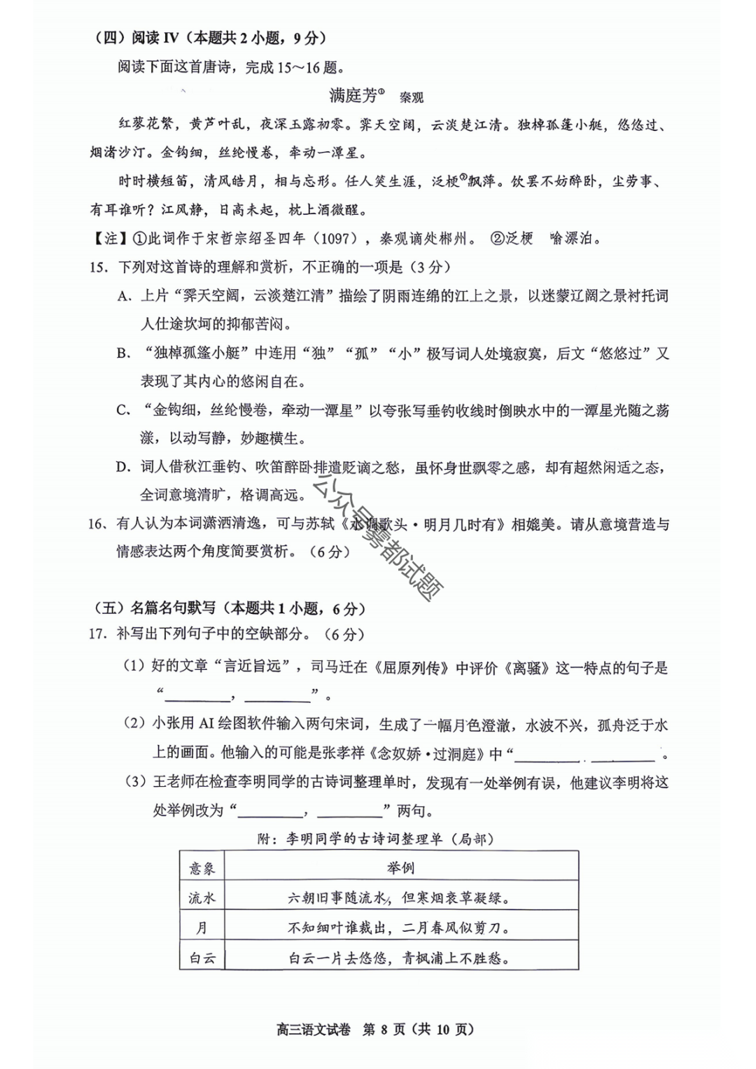 江西省九江市2026届高三第一次高考模拟统一考试(九江一模) 江西省九江市2026届高三第一次高考模拟统一考试(九江一模)