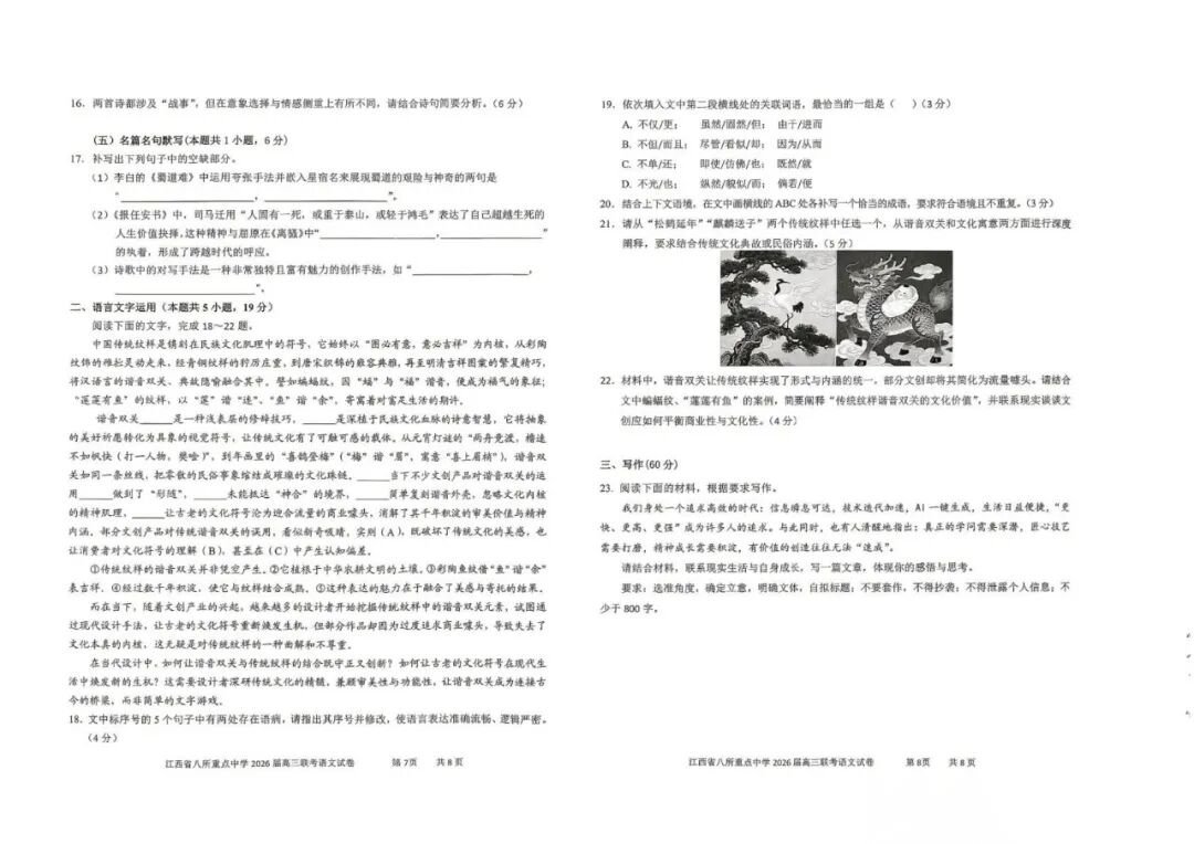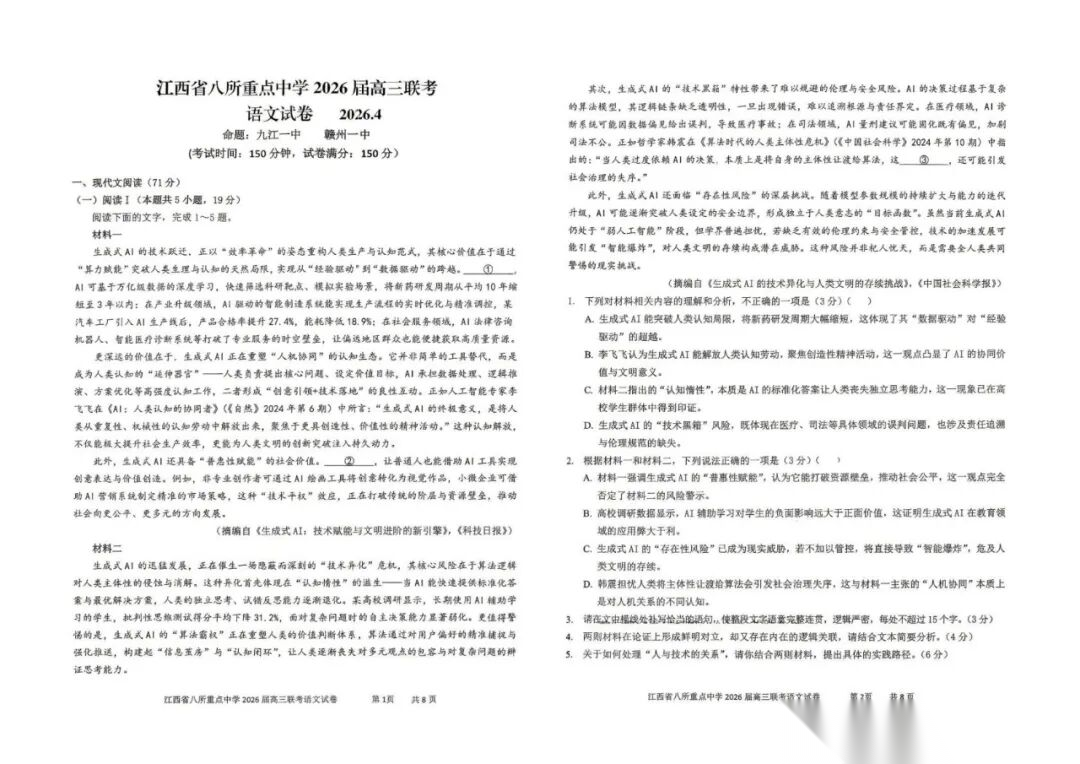 【语、数】2026年贵州省4月高三年级适应性考试 【语、数】2026年贵州省4月高三年级适应性考试
