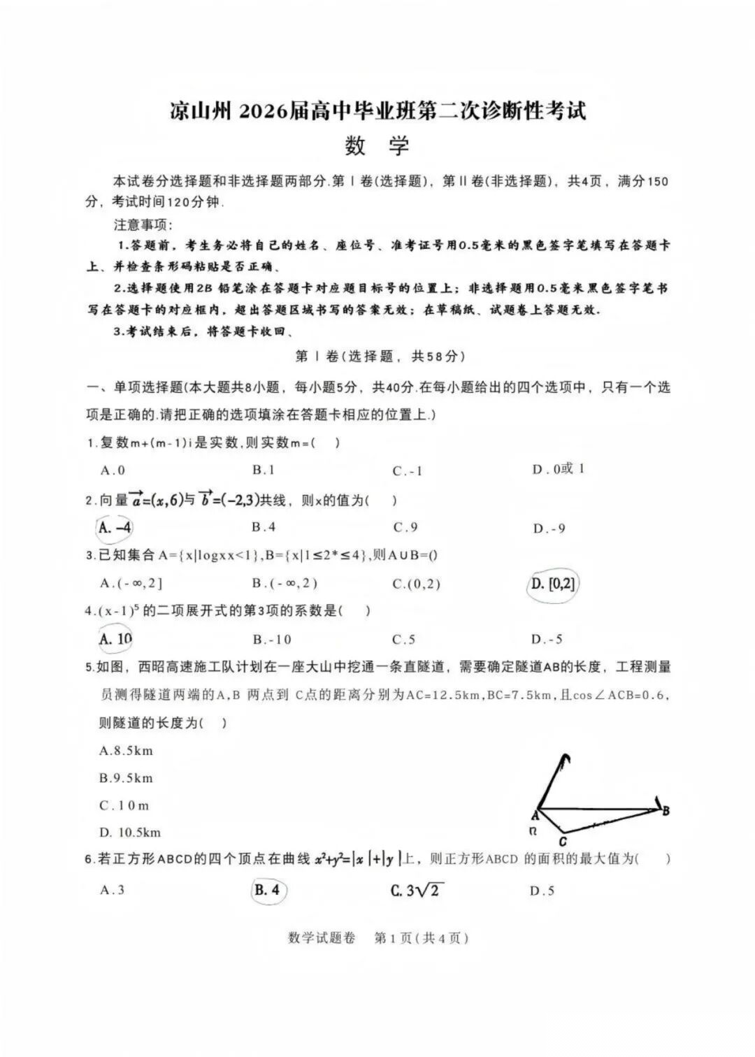 2026年四川凉山州高三二诊诊断性考试试卷及答案汇总(凉山州二诊)