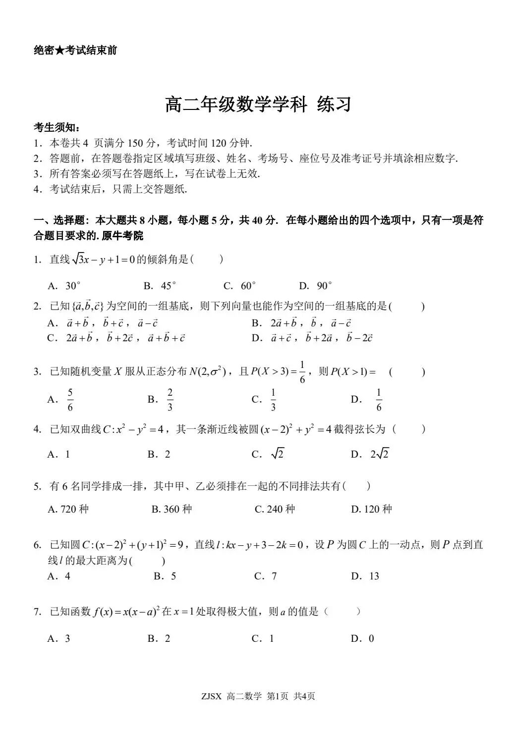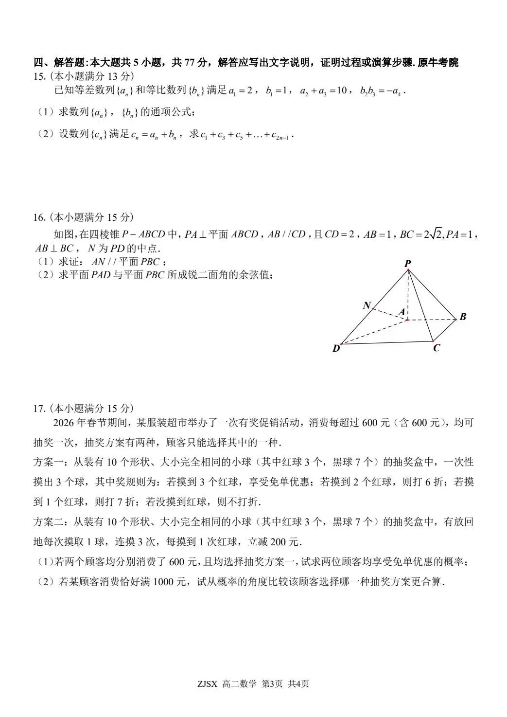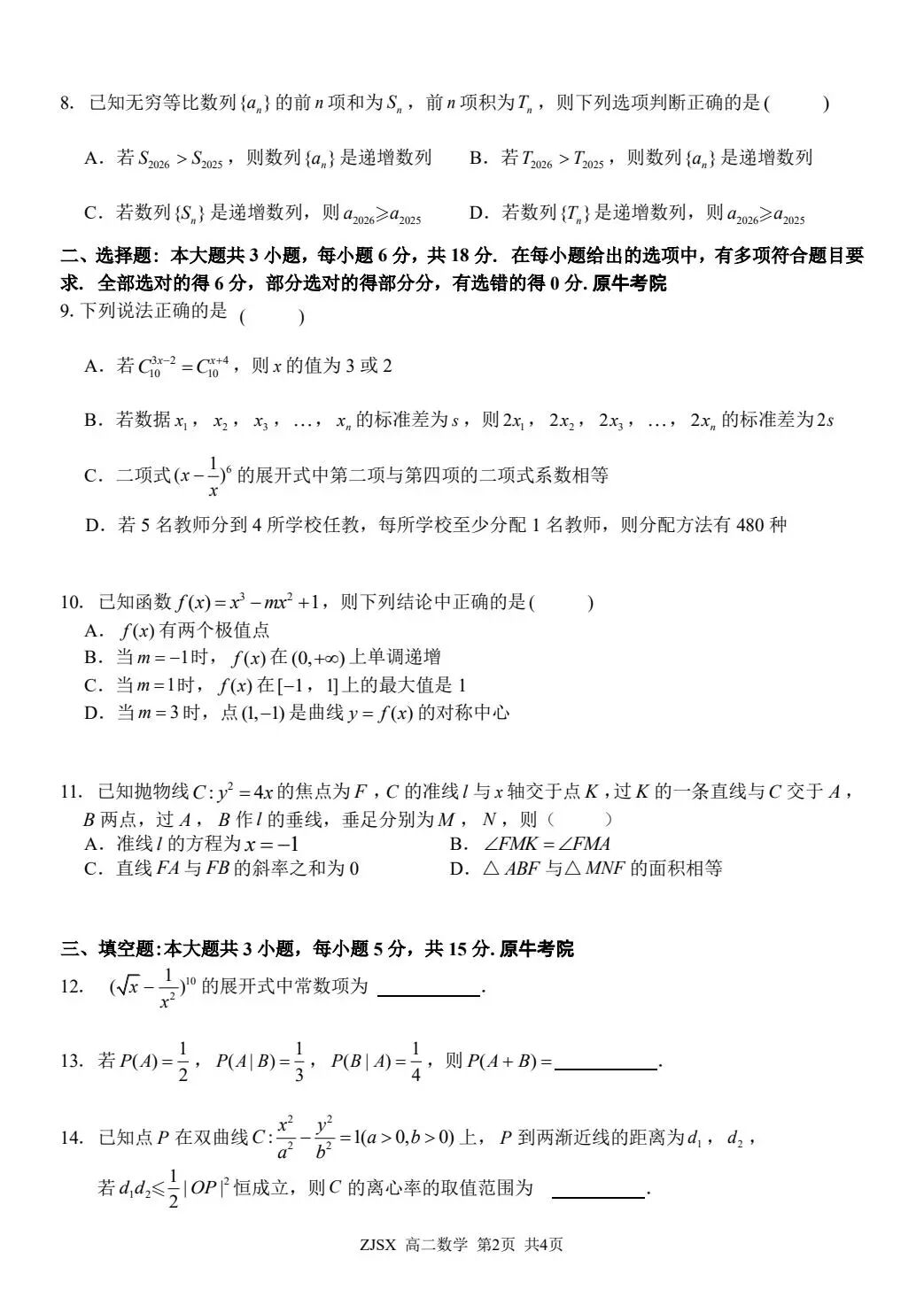 【语、数】2026年贵州省4月高三年级适应性考试 【语、数】2026年贵州省4月高三年级适应性考试