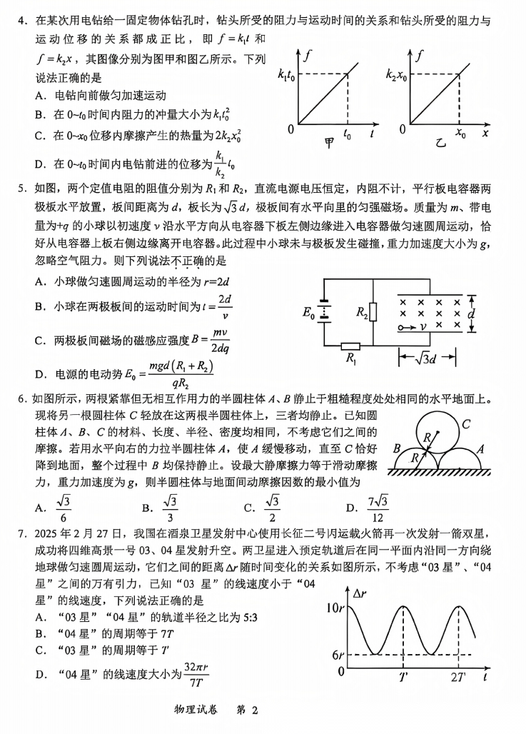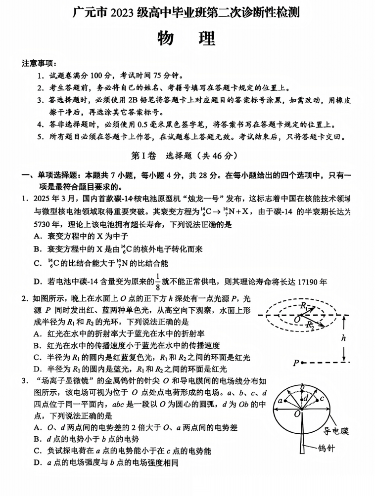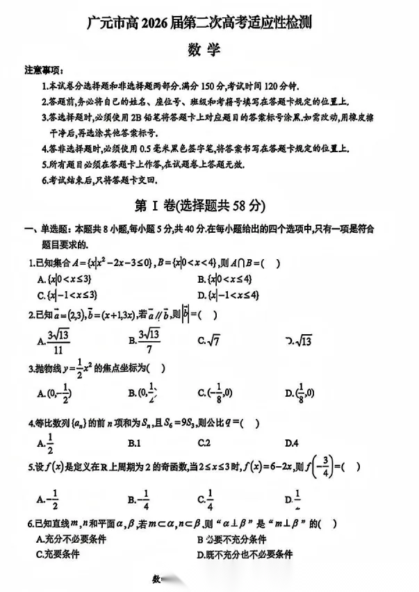 【四川卷】四川省广元市高2026届高三年级第二次高考适应性检测(南广元二诊)(3.30-4.1) 数学物理英语语文历史试题卷+答案