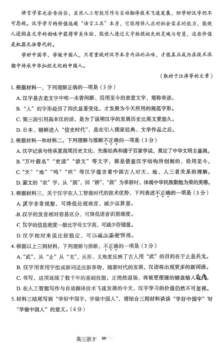 【北京卷】北京市朝阳区2025-2026学年度高三年级第二学期质量检测一(朝阳一模)(3.31-4.3) 数学语文试题卷+答案 【北京卷】北京市朝阳区2025-2026学年度高三年级第二学期质量检测一(朝阳一模)(3.31-4.3) ...