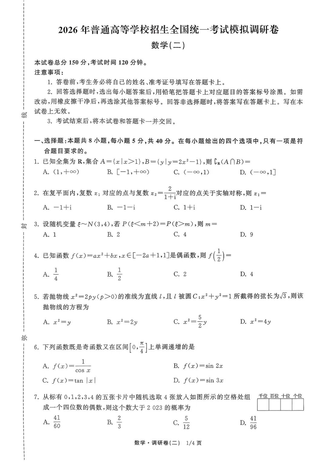 【四川卷】四川省凉山州2026届高中毕业班高三年级第二次诊断性考试(凉山州二诊)(3.30-4.1) 数学物理英语语文试题卷+答案 【四川卷】四川省凉山州2026届高中毕业班高三年级第二次诊断性考试(凉山州二诊)(3.30-4.1) 数学物理英...