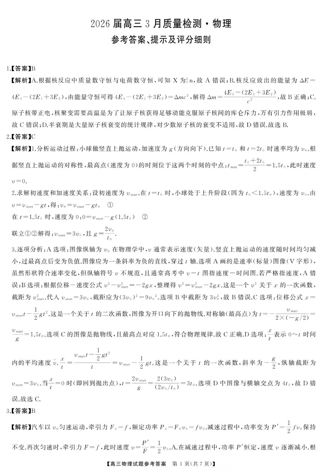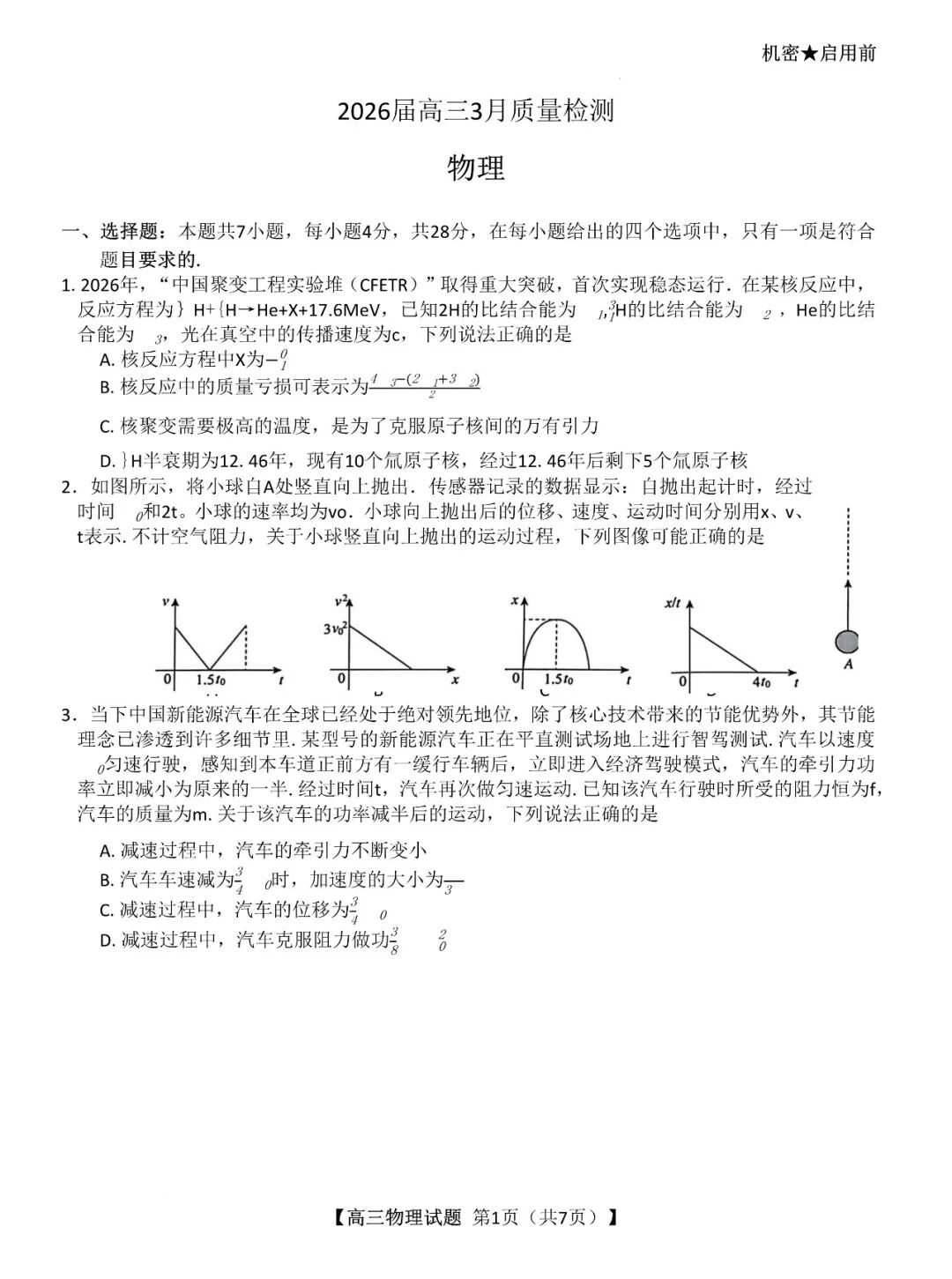 【全科】2026届湖南天壹名校联盟高三下学期3月质检
