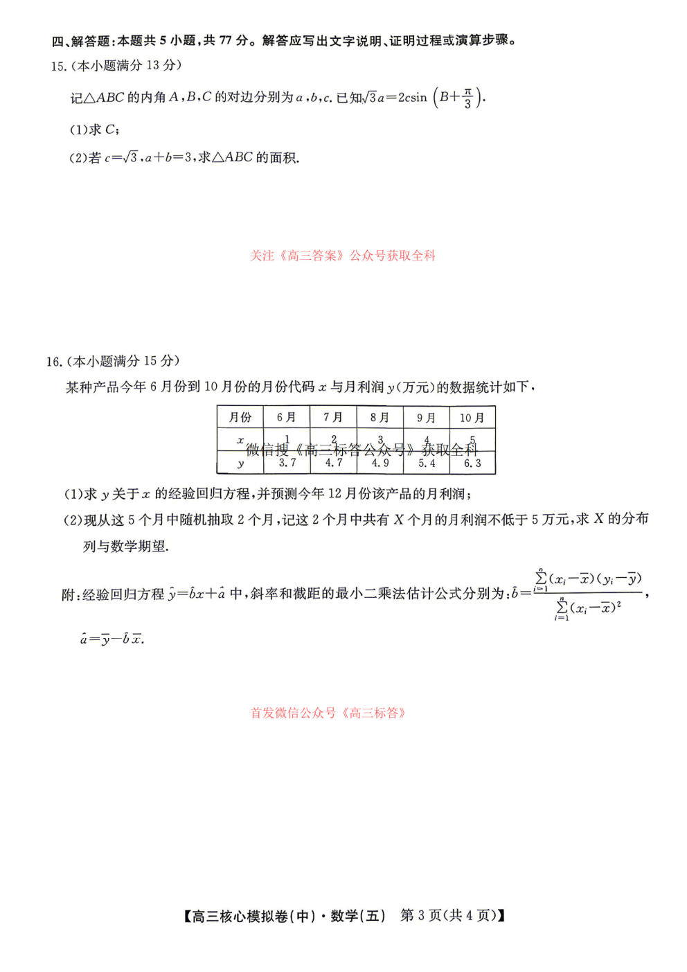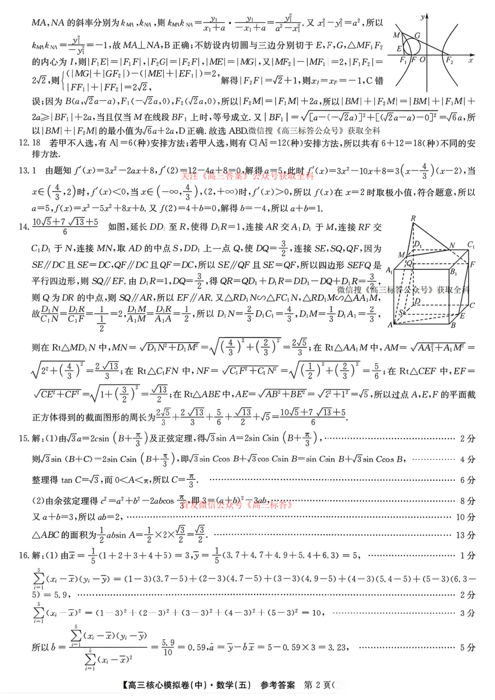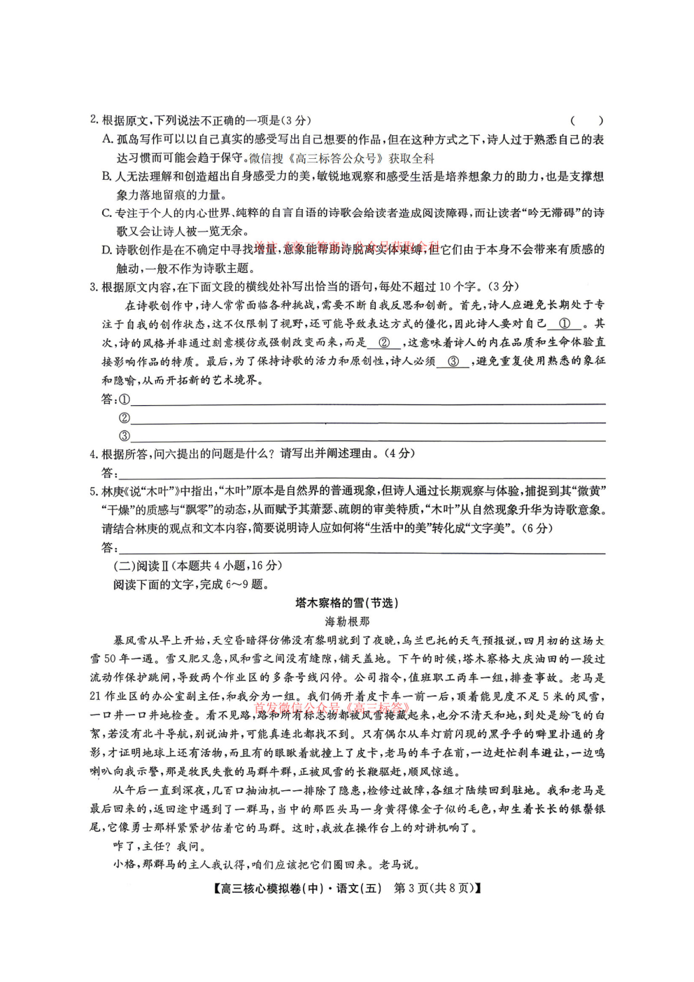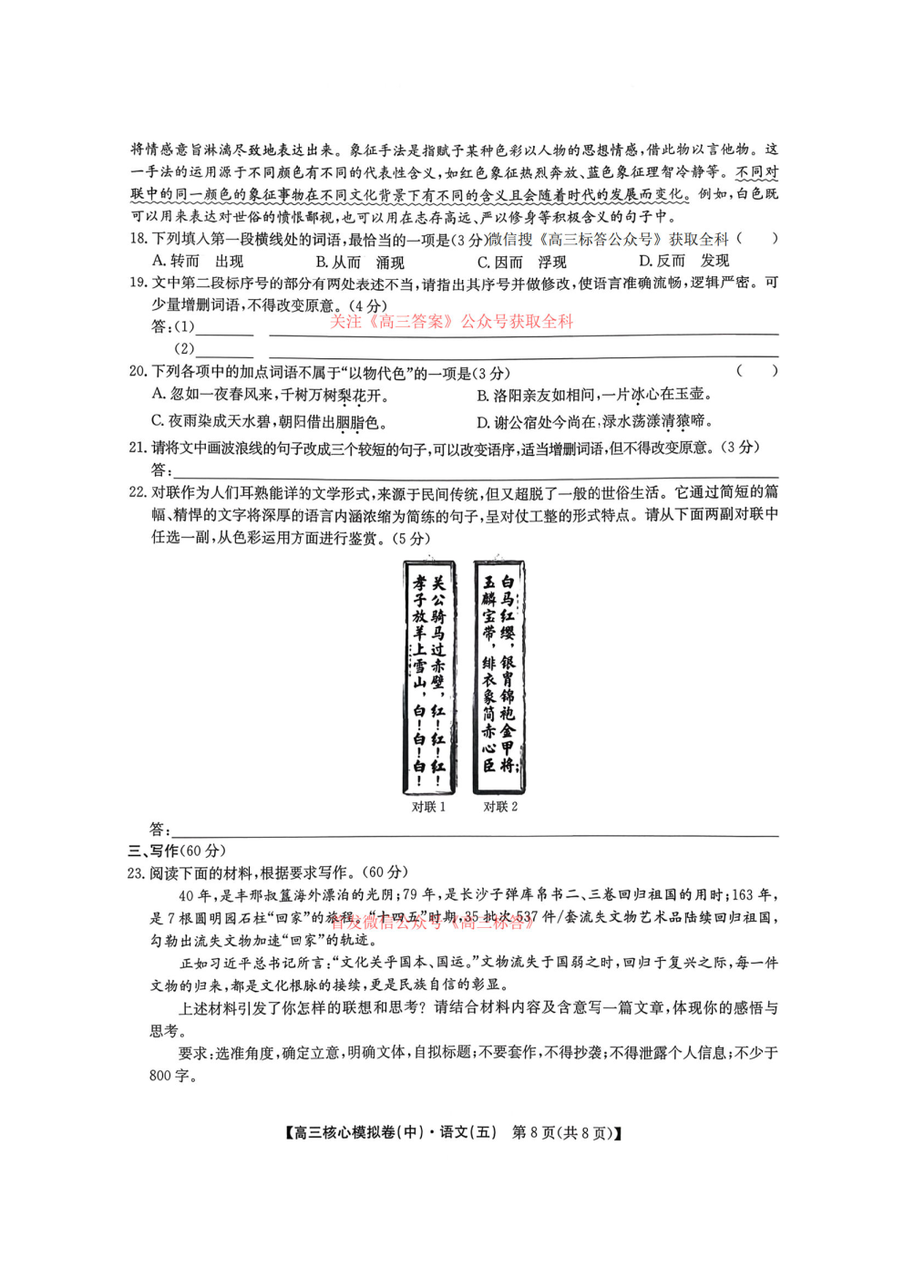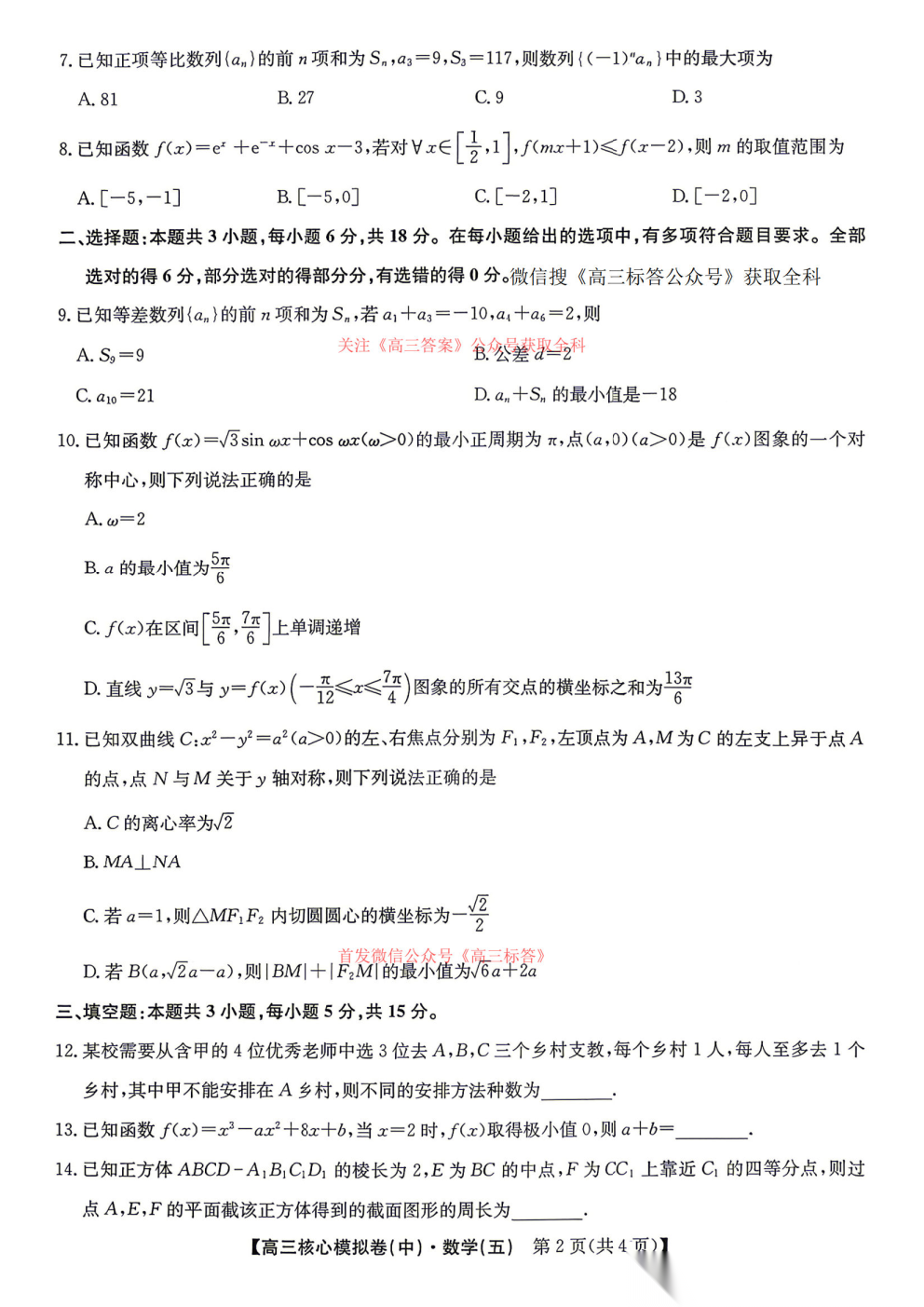 九师联盟2025-2026学年高三核心模拟卷中五答案