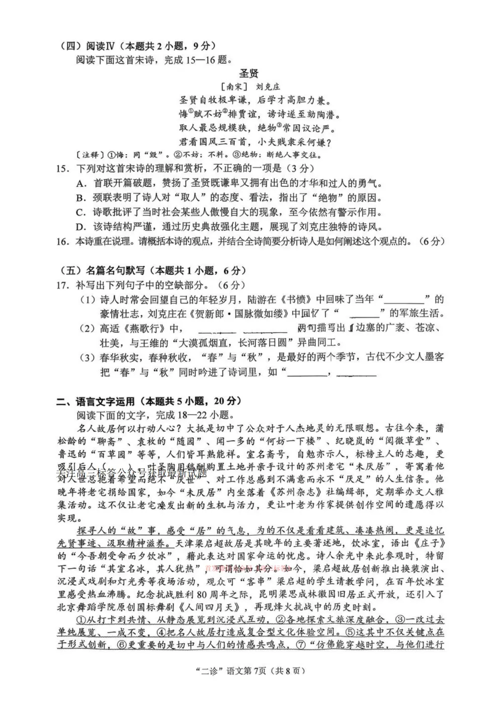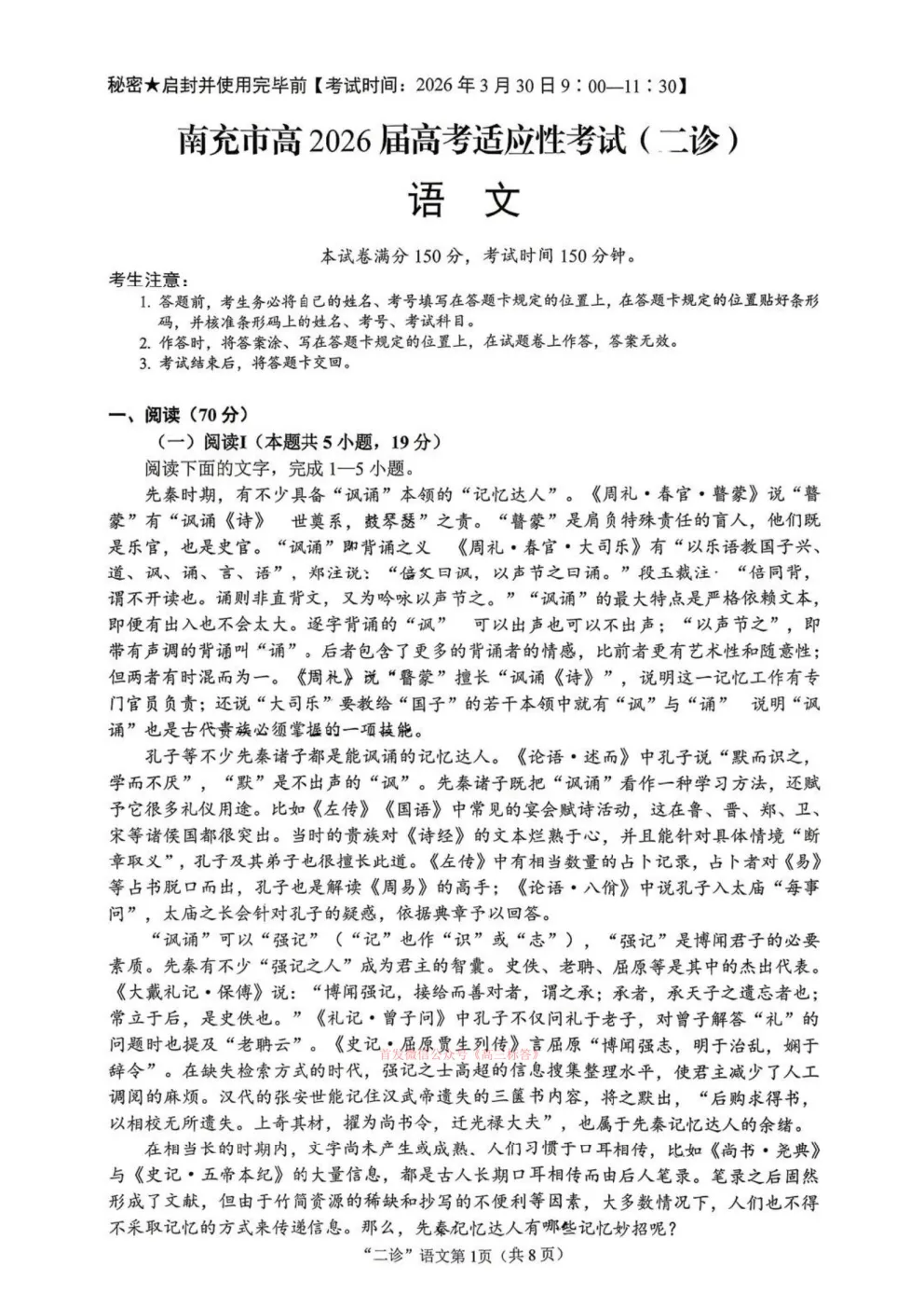 【南充二诊】南充市高2026届高考适应性考试二诊全科下载