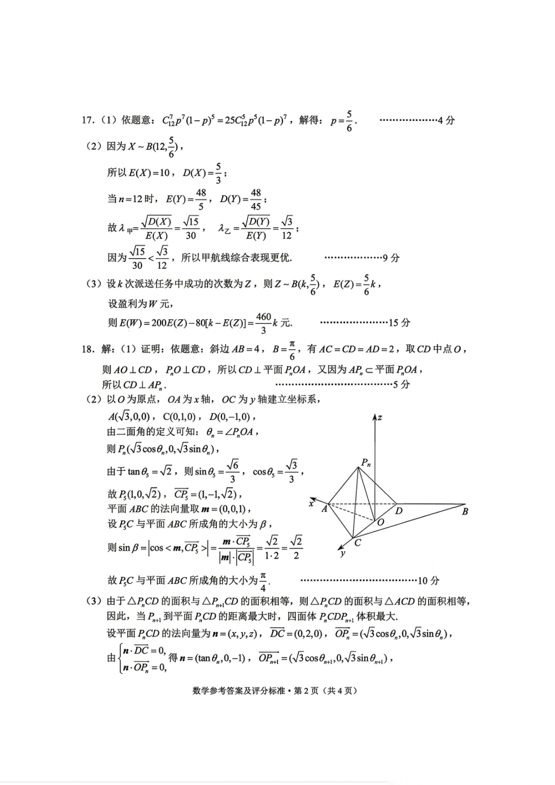 江西省八所重点中学2026届高三4月联考答案 江西省八所重点中学2026届高三4月联考答案