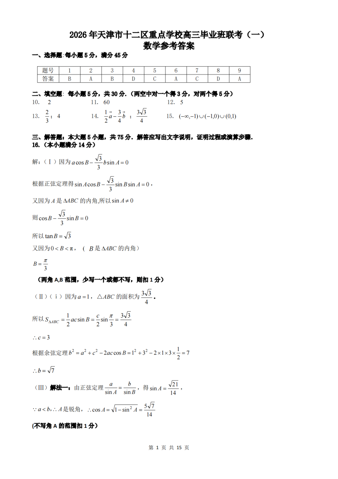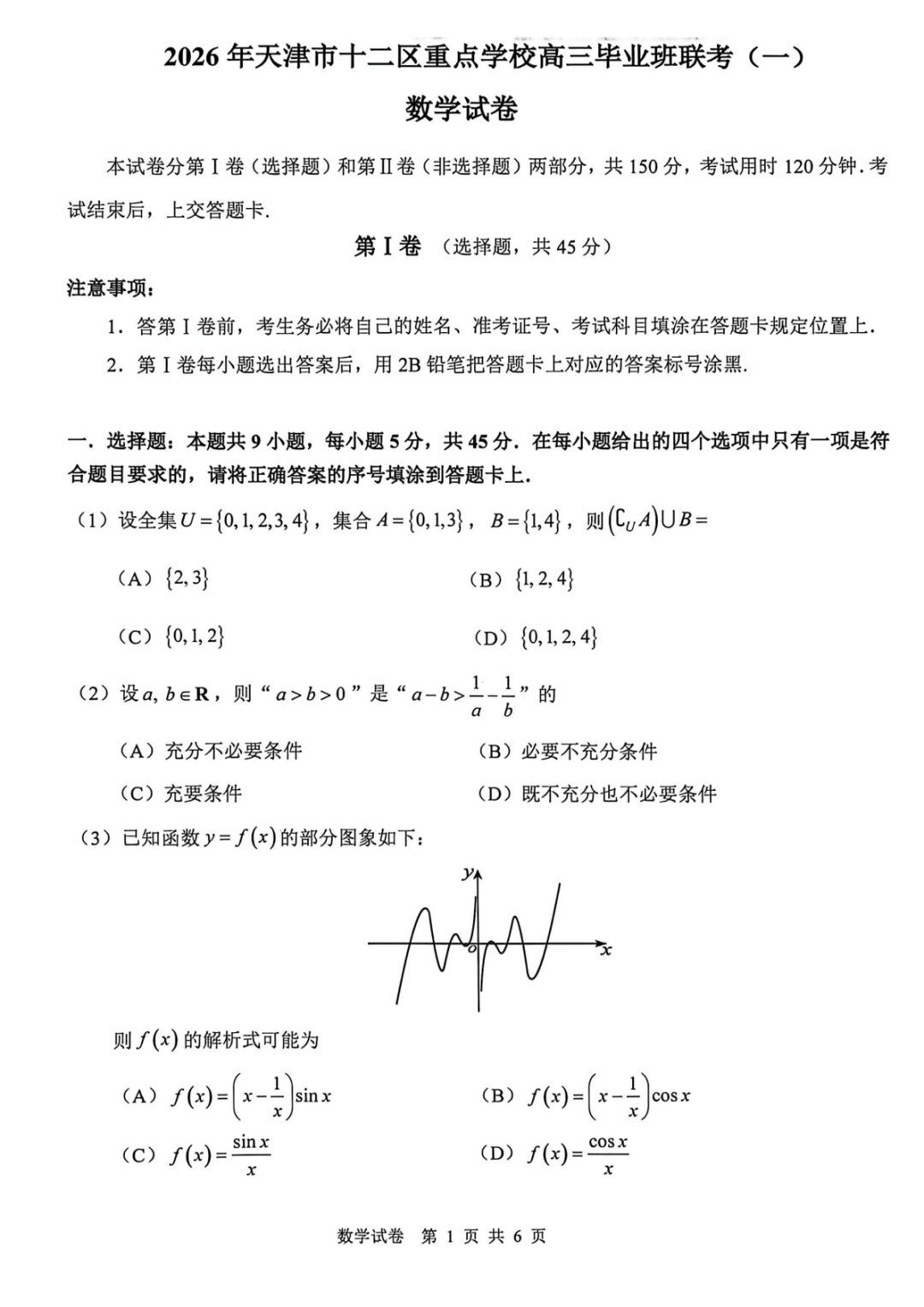 【全科】2026年天津市十二区重点中学校高三毕业班联考一(一模)