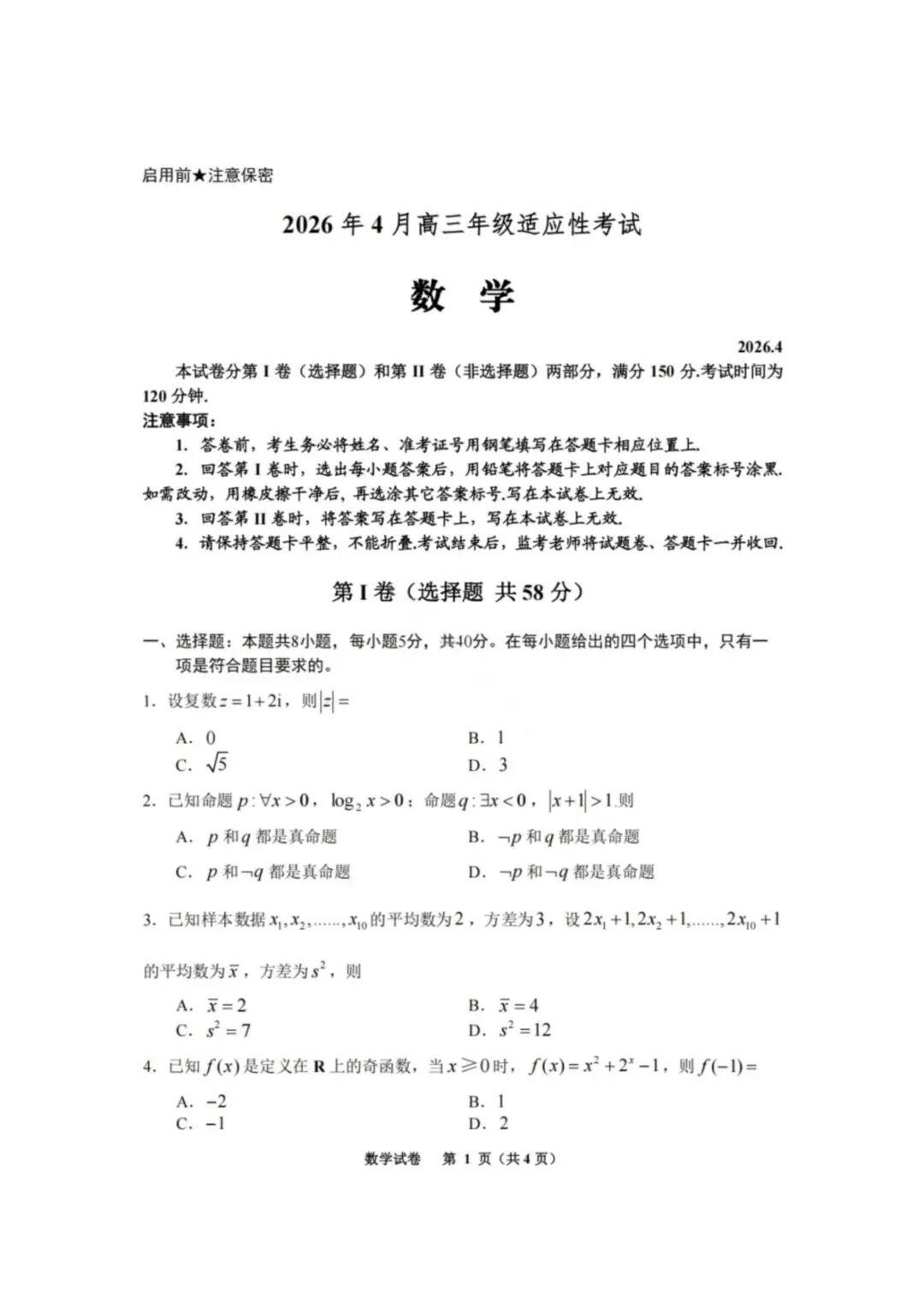 【南充二模全科】南充市高2026届高考适应性考试(二诊) 【南充二模全科】南充市高2026届高考适应性考试(二诊)