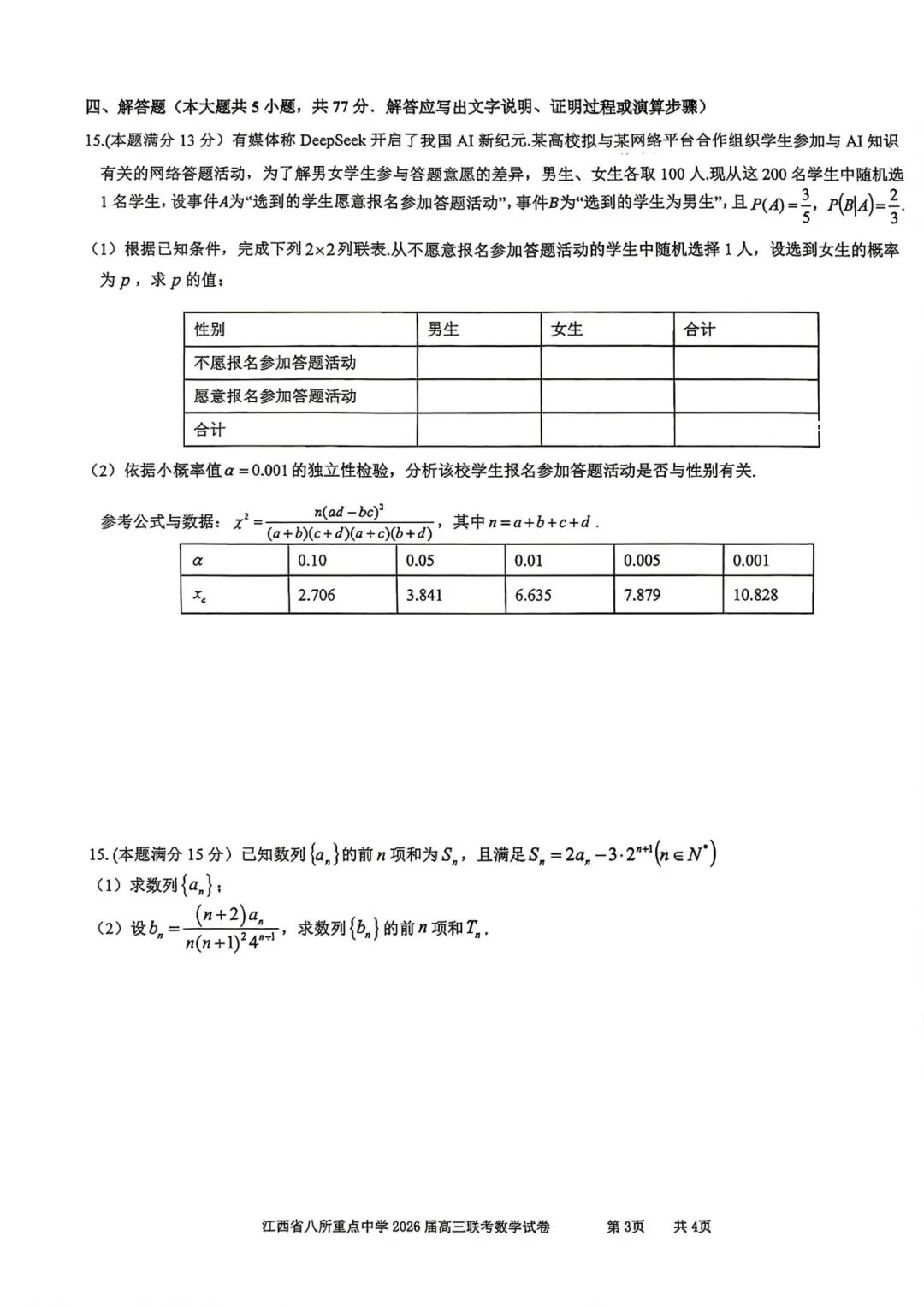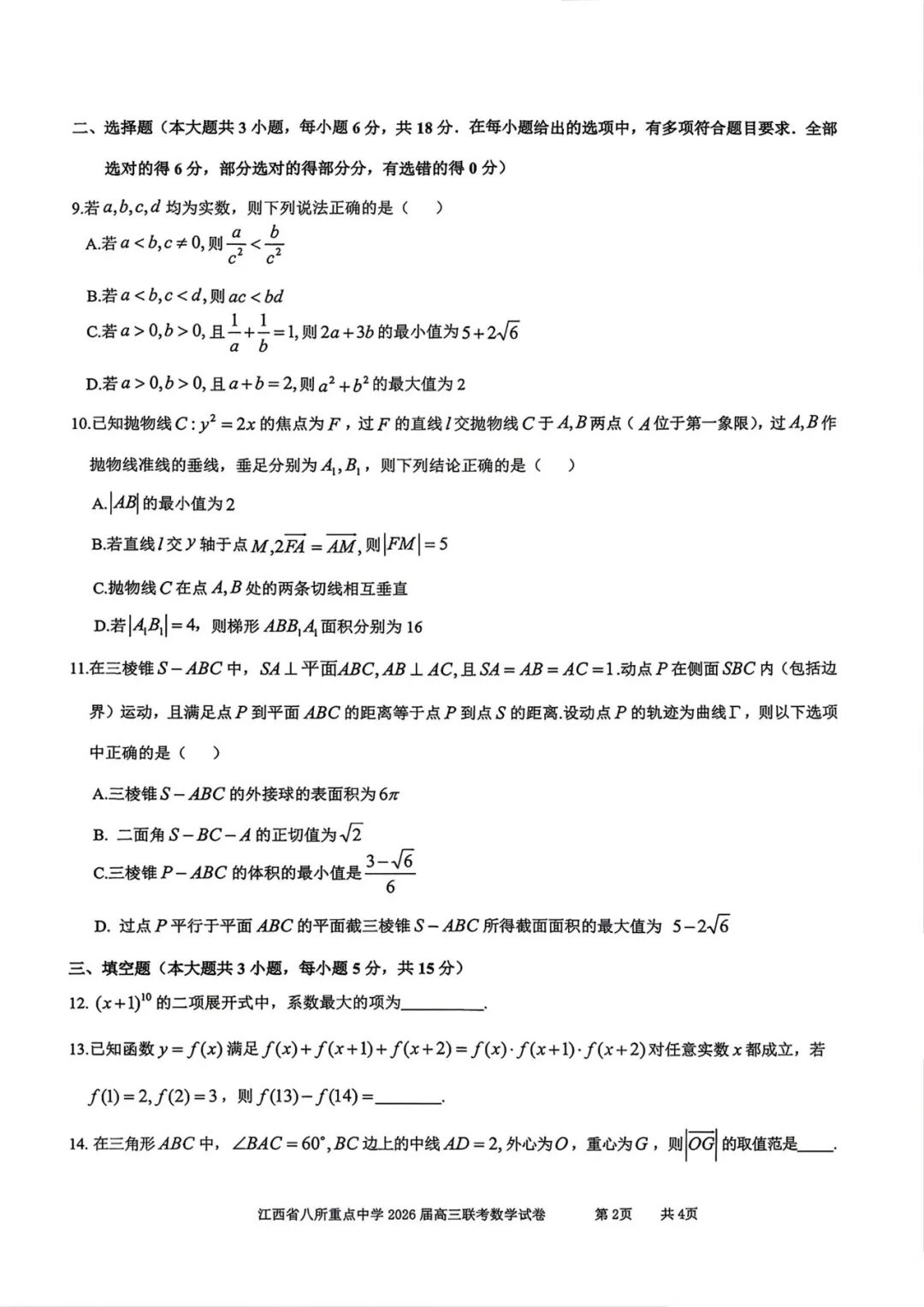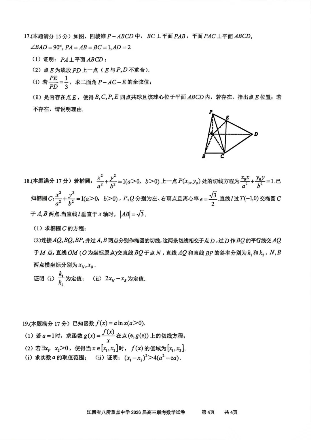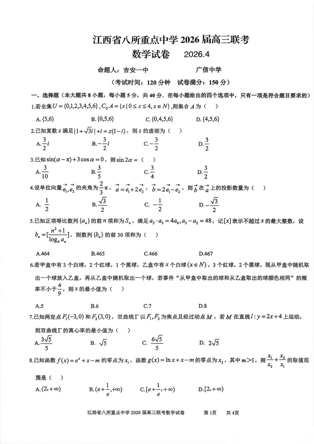 2026年4月江西八所重点中学(九江一中/宜春中学/临川一中/南昌二中等)联考试卷及答案汇总