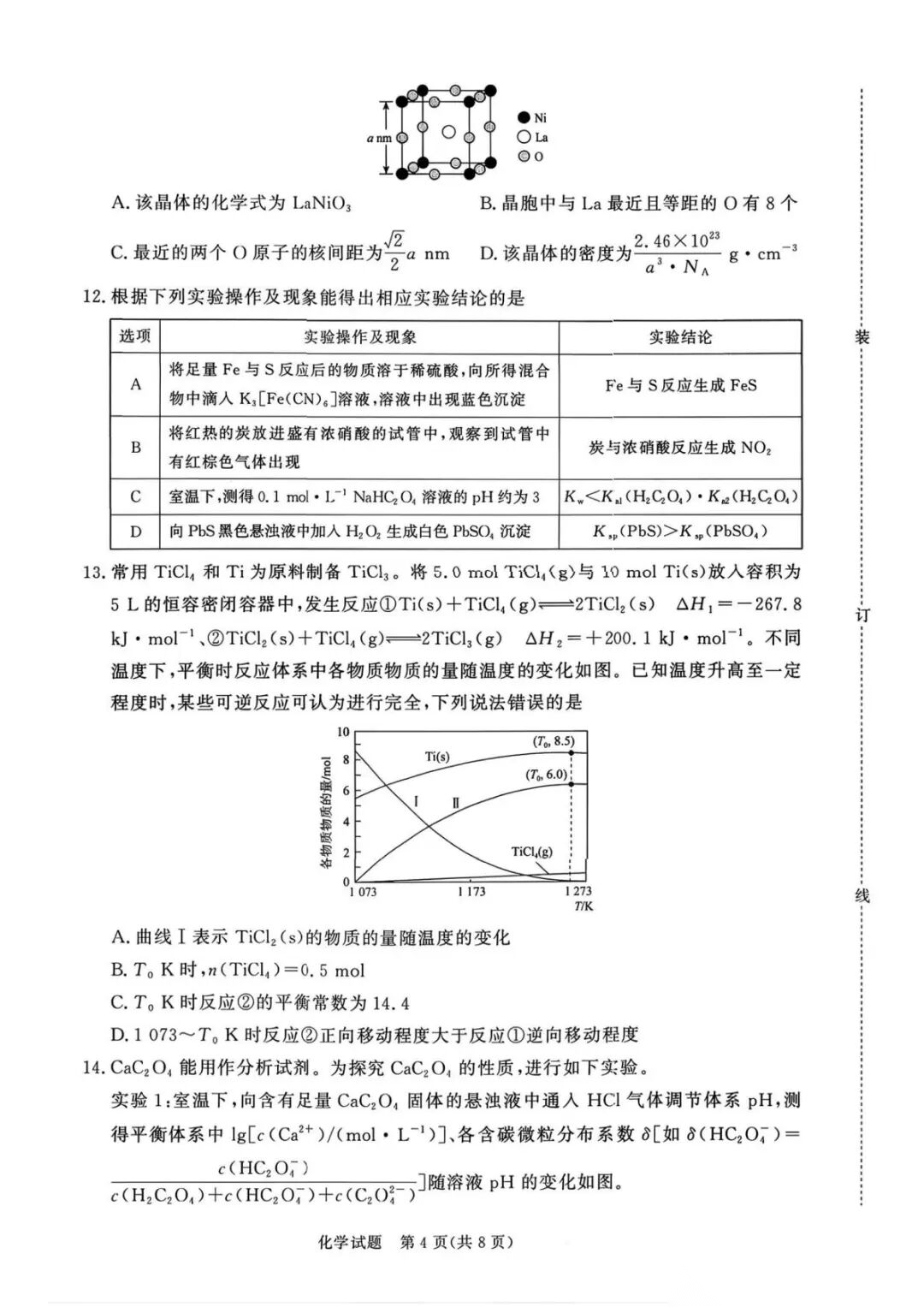 2026年4月河南新乡高三二模适应性考试试卷及答案汇总