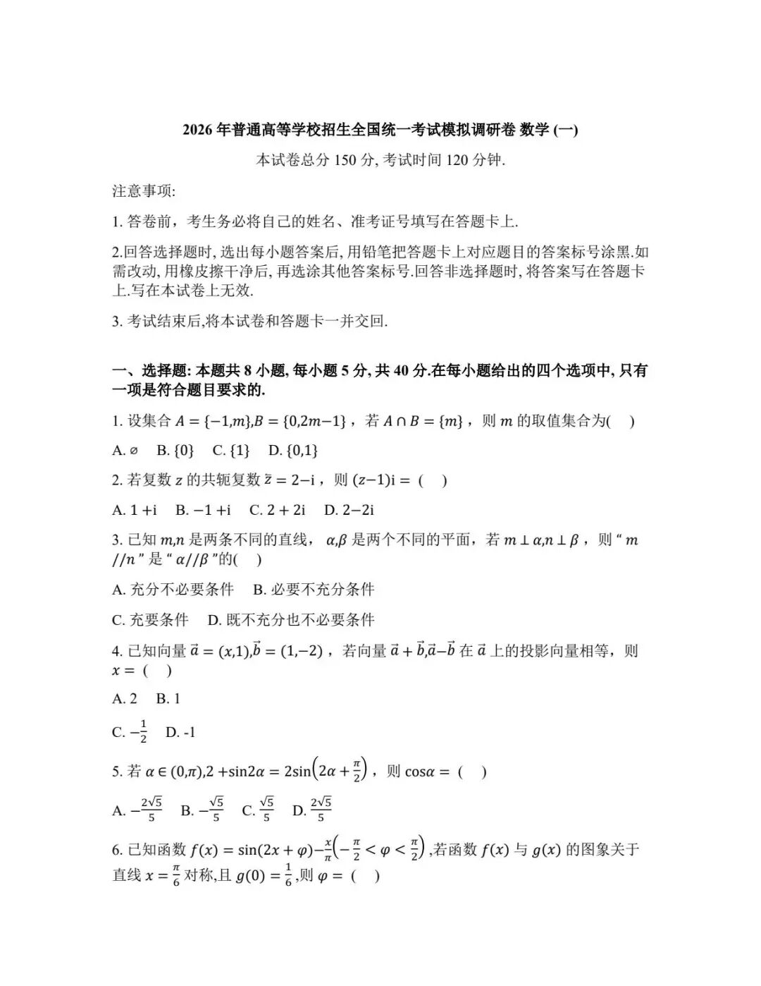 【贵州一模】2026年4月贵州省高三一模选择性考试科目适应性测试试卷及答案 【贵州一模】2026年4月贵州省高三一模选择性考试科目适应性测试试卷及答案