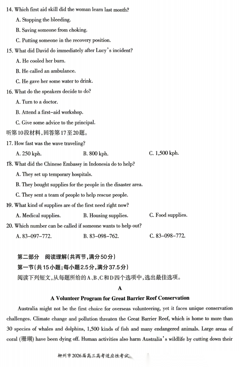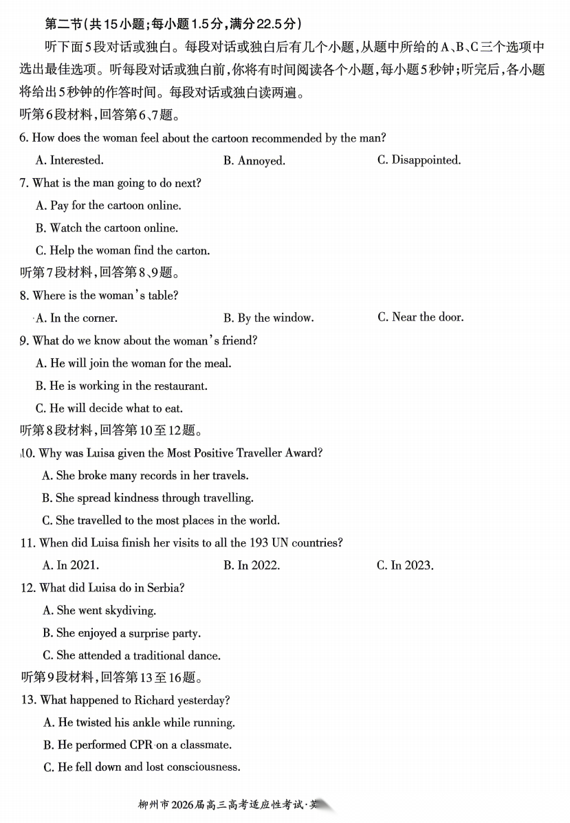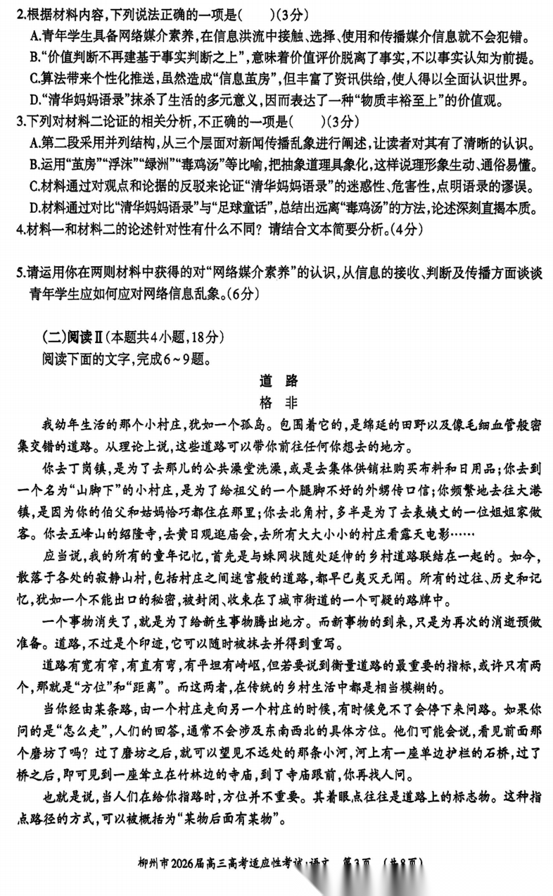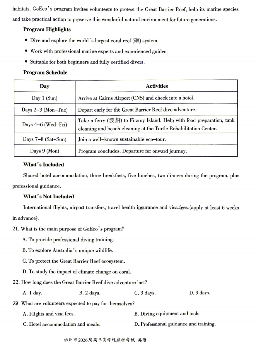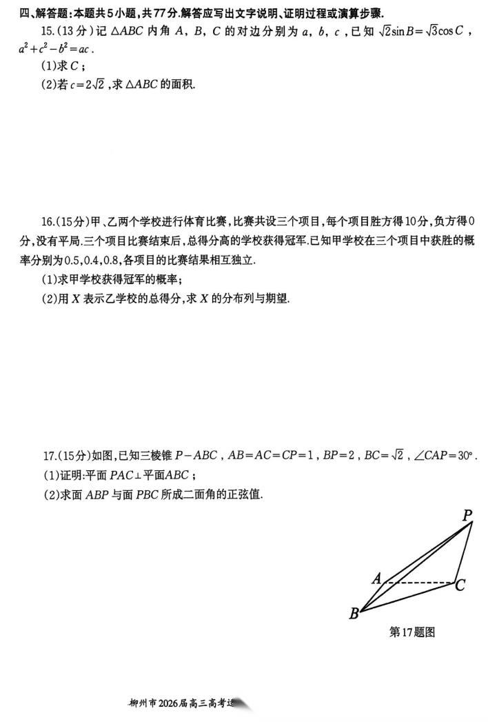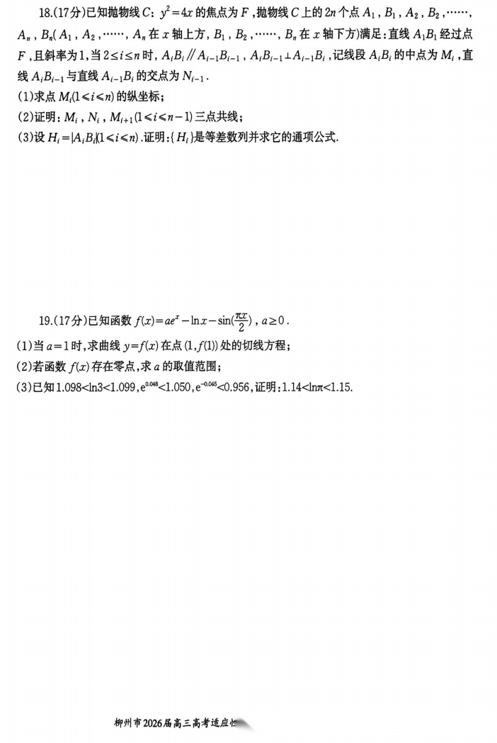 【广西卷】广西壮族自治区柳州市2026届高三年级3月末高考适应性考试(柳州三模)(3.30-3.31) 全科试题卷+答案