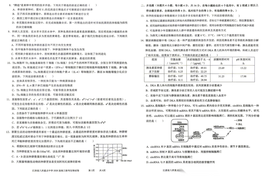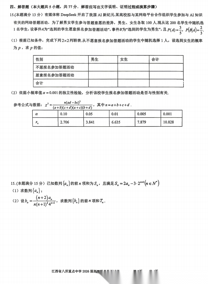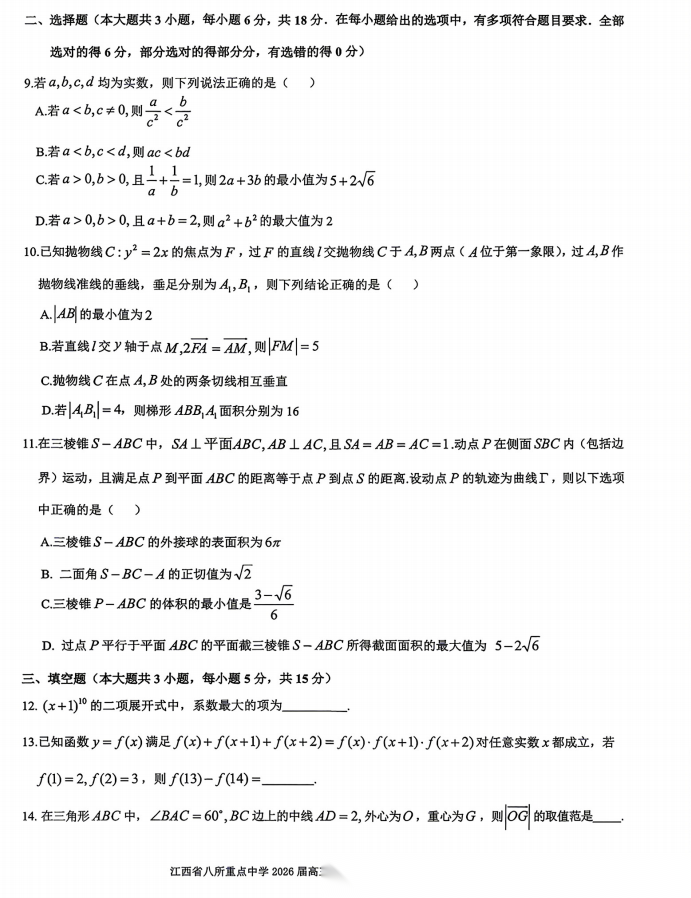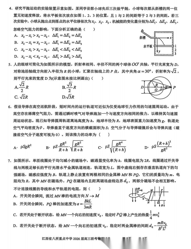 【江西卷】江西省八所重点中学(九江一中、宜春中学、临川一中、南昌二中等)2026届高三年级4月联考(4.1-4.2) 全科试题卷+答案