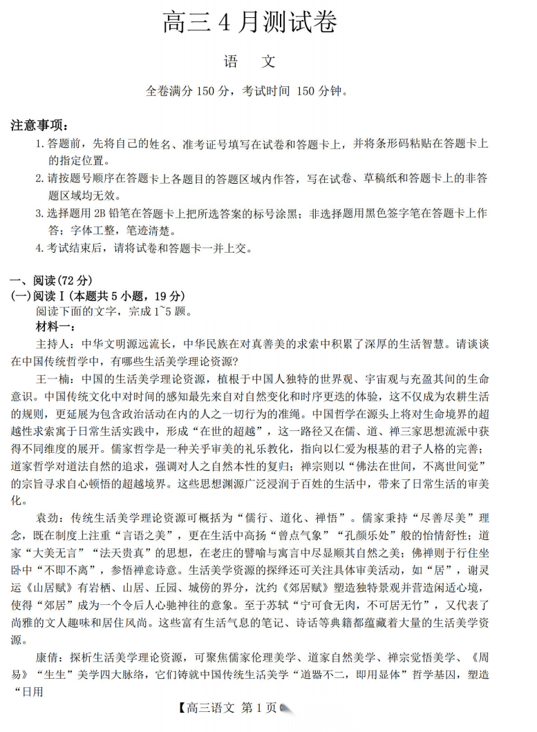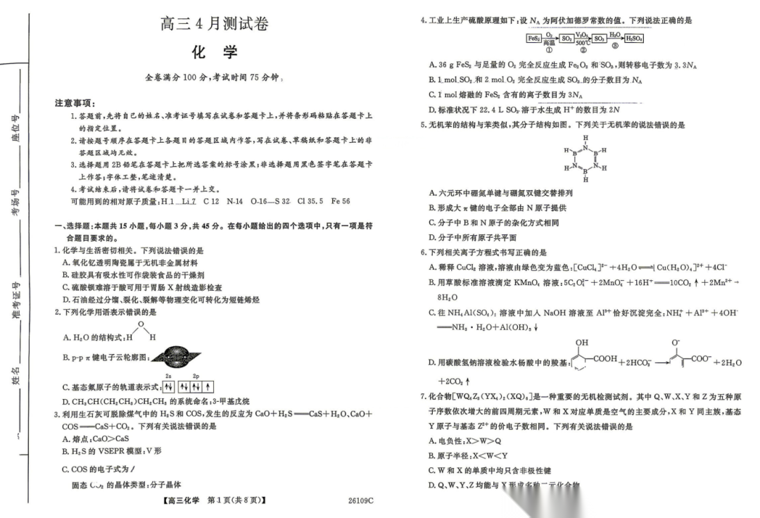 【安徽卷】安徽省淮北市第一中学2026届高三下学期周考(三)(3月末) 全科试题卷+答案 【安徽卷】安徽省淮北市第一中学2026届高三下学期周考(三)(3月末) 全科试题卷+答案