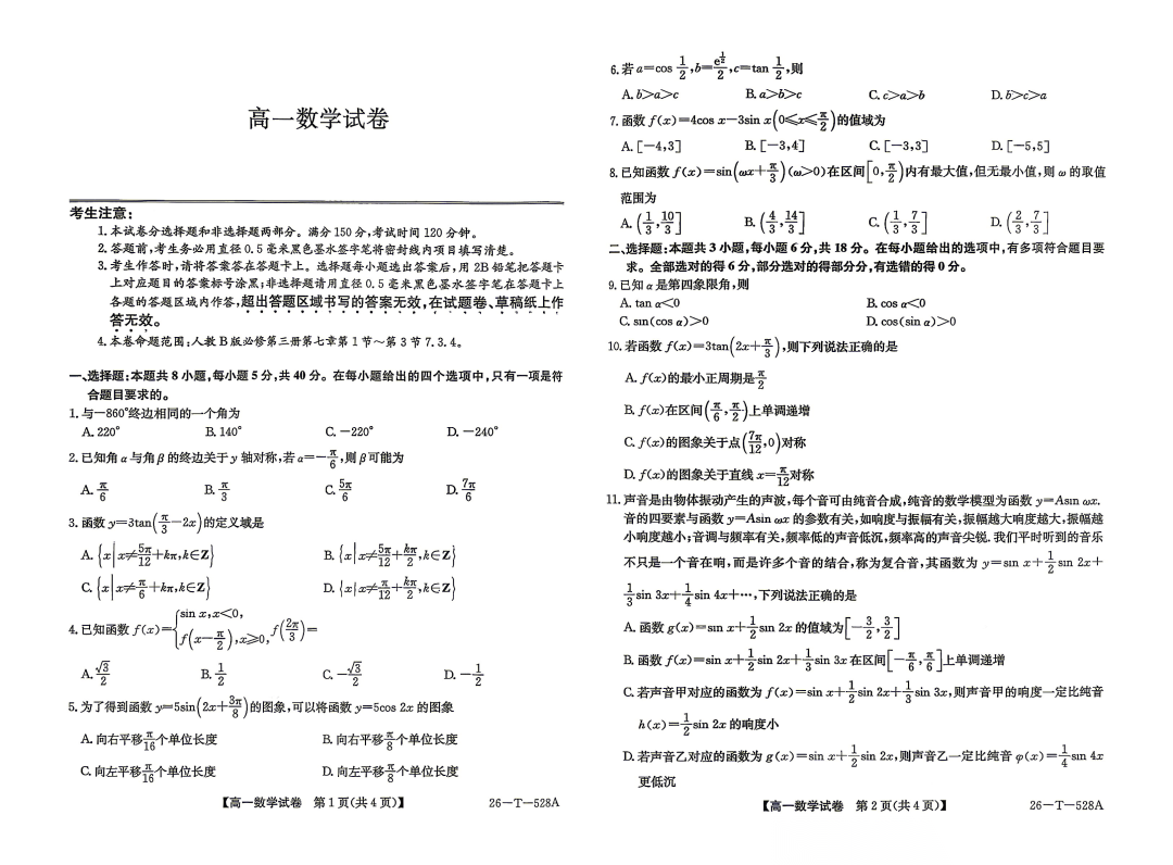 【贵州卷】贵州省2026年4月高三年级适应性考试(分为三套卷)(贵州一模)(3.31-4.2) 全科试题卷+答案 【贵州卷】贵州省2026年4月高三年级适应性考试(分为三套卷)(贵州一模)(3.31-4.2) 全科试题卷+答...