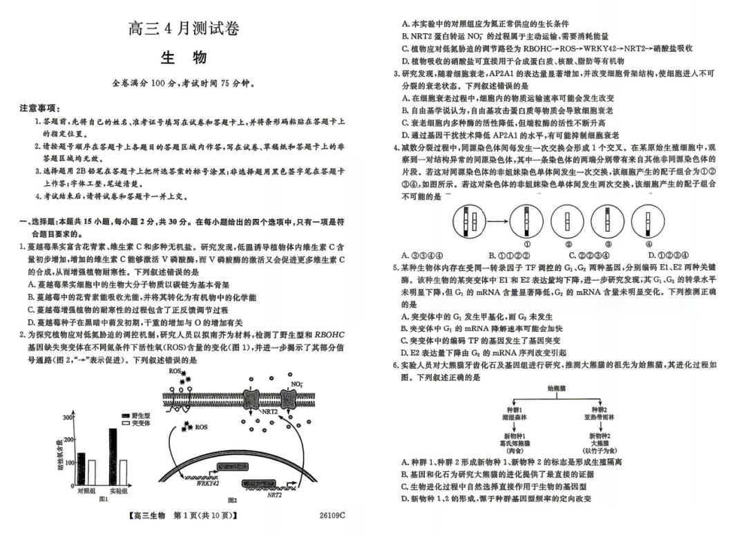 【黑吉辽蒙卷】辽宁省县级重点高中协作体2026届高三年级4月测试卷(二模)(26-109C)(4.1-4.2) 全科试题卷+答案