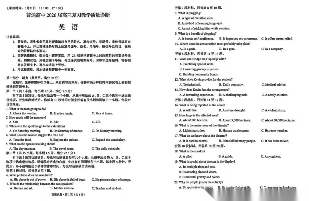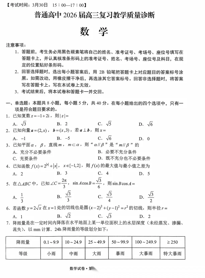【补齐重发】【四川卷】四川省南充市高2026届高三高考适应性考试(二诊)(南充二诊)(3.30-4.1) 全科试题卷+答案 【补齐重发】【四川卷】四川省南充市高2026届高三高考适应性考试(二诊)(南充二诊)(3.30-4.1) 全科试题...