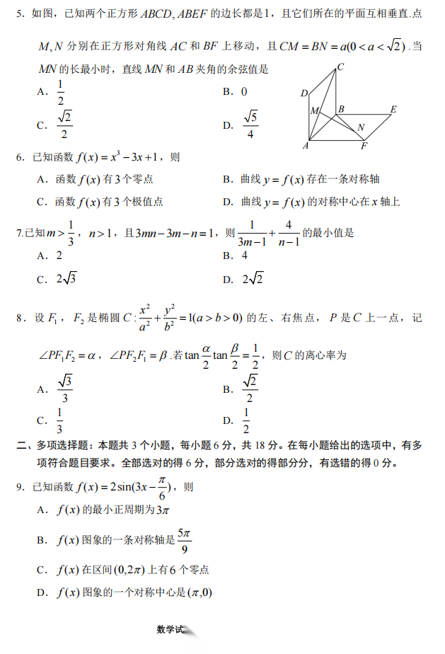 【补齐重发】【四川卷】四川省南充市高2026届高三高考适应性考试(二诊)(南充二诊)(3.30-4.1) 全科试题卷+答案 【补齐重发】【四川卷】四川省南充市高2026届高三高考适应性考试(二诊)(南充二诊)(3.30-4.1) 全科试题...
