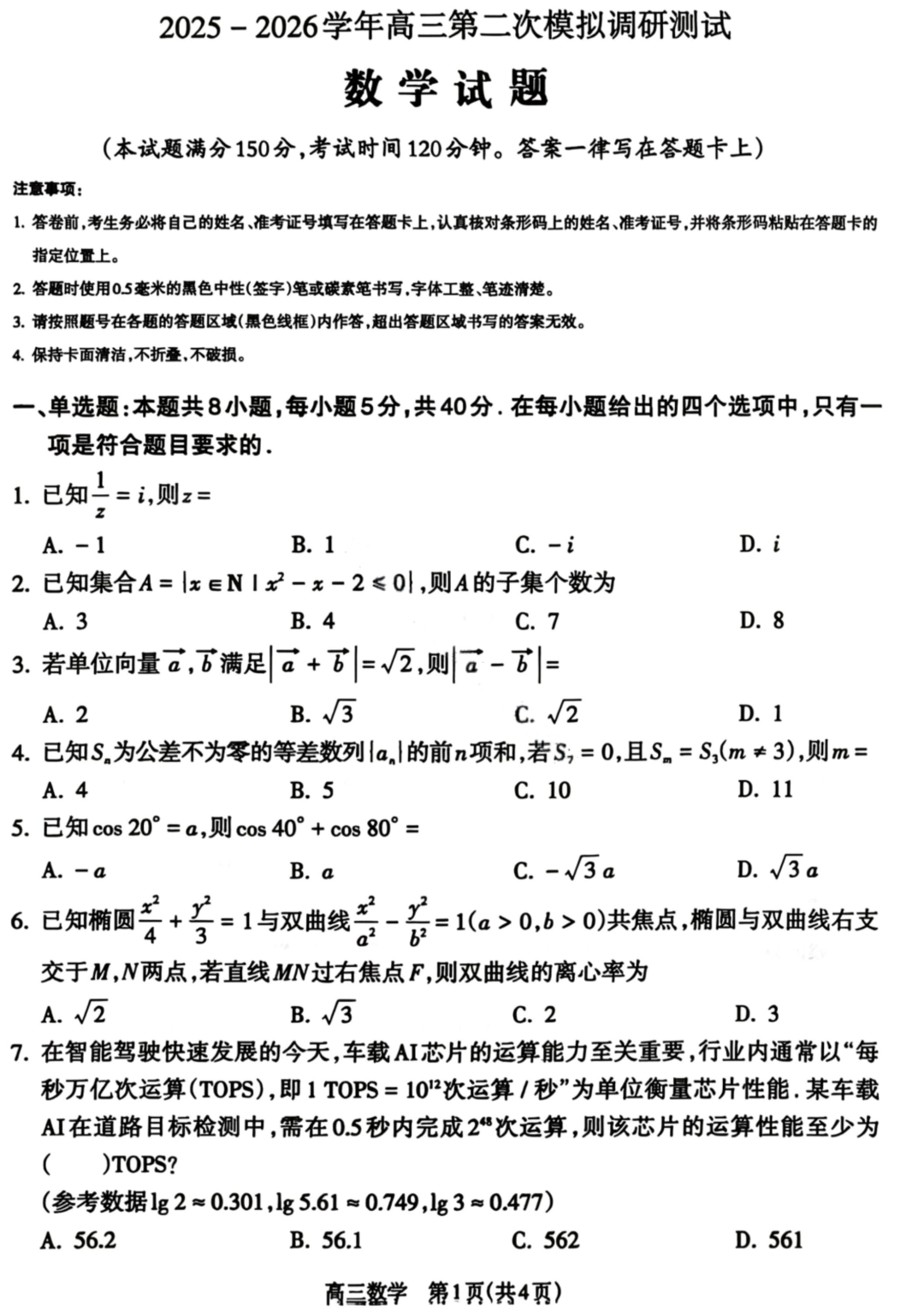 【补齐重发】【四川卷】四川省南充市高2026届高三高考适应性考试(二诊)(南充二诊)(3.30-4.1) 全科试题卷+答案 【补齐重发】【四川卷】四川省南充市高2026届高三高考适应性考试(二诊)(南充二诊)(3.30-4.1) 全科试题...