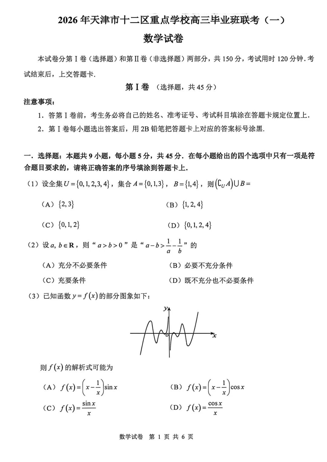 【全科】天津市十二区重点学校2025—2026学年高三下学期毕业联考(一)